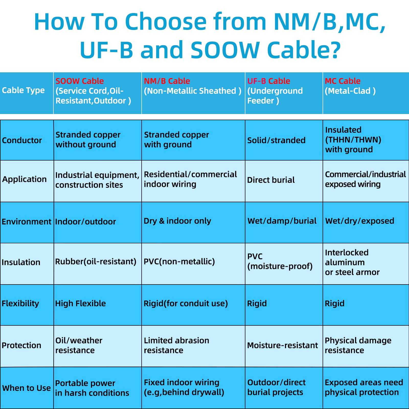 - Water and oil resistant: The 600V 6 AWG SOOW wire 6/4 6 Gauge 4 conductor SOOW electric wire (SOOW-Service, Oil, and Water Resistant) is designed to withstand harsh conditions, perfect for industrial/outdoor/commercial use,including NEMA 14-50 welder machine/power generator/RV outlet box/electric car charger/fryer/dryer.