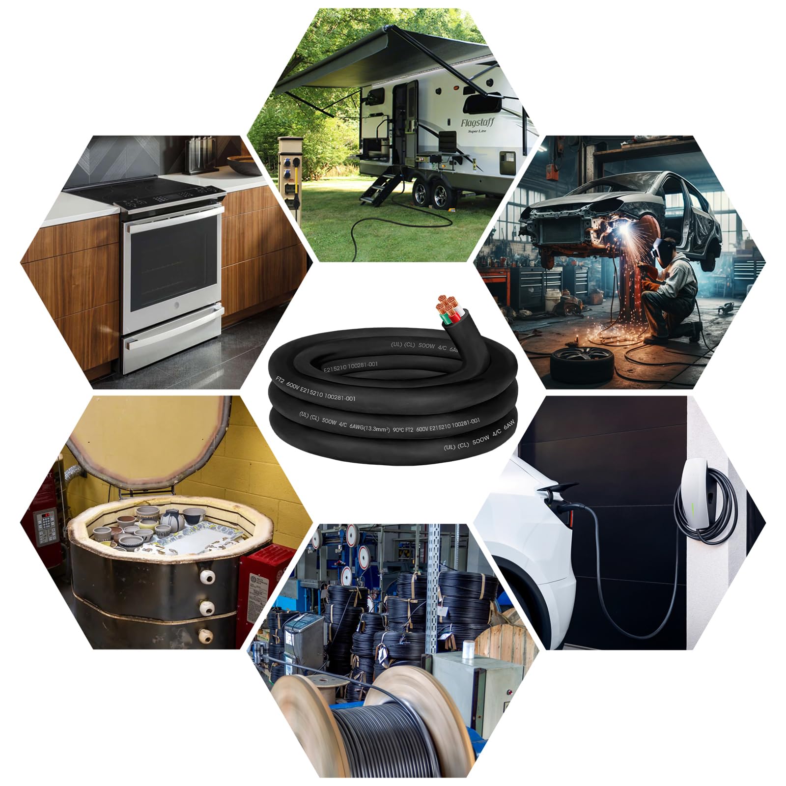 - Safe 6 AWG SOOW portable power cable: The 6 gauge 4 conductor OFC wire (OFC-Oxygen Free Copper) meets UL standards (UL E1215210), provides greater electrical conductivity, and the 600V SOOW electrical cable cord wire rating without overheating or damaging electric 6/4 SOOW cable for ensuring safety and durability in all situations.