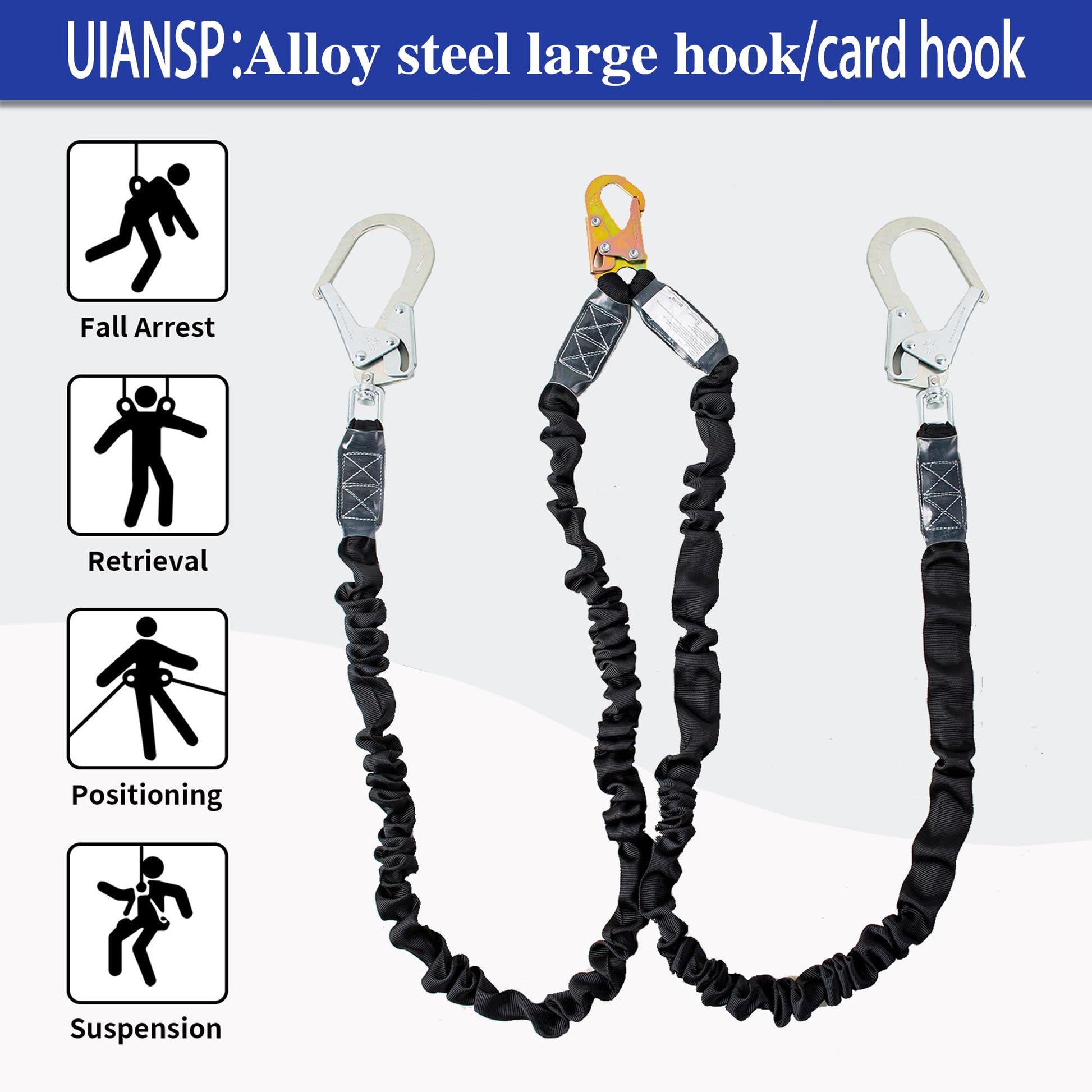 - Material:Safety Lanyard for Harness UIANSP 6 FT Double Leg Internal Shock Absorbing Lanyard, Adopting High-strength Polyester Outer Webbing and High-strength Load-bearing Polyester Rope, The Product Has High Breaking Force and Tensile Strength, Preventing Aging