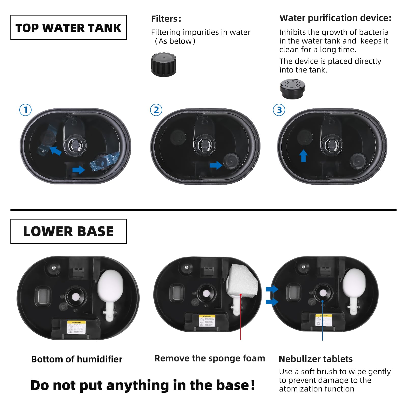 - Warm and Cool Mist Humidifiers:Our ultrasonic humidifiers offers both cool and warm mist options, switchable with a single touch. The strong cool mist humidifier the dry room air for improved sleep. The warm mist humidifier is ideal for moisturizing the skin and easing discomfort.Note: Remove the white foam from the base before use