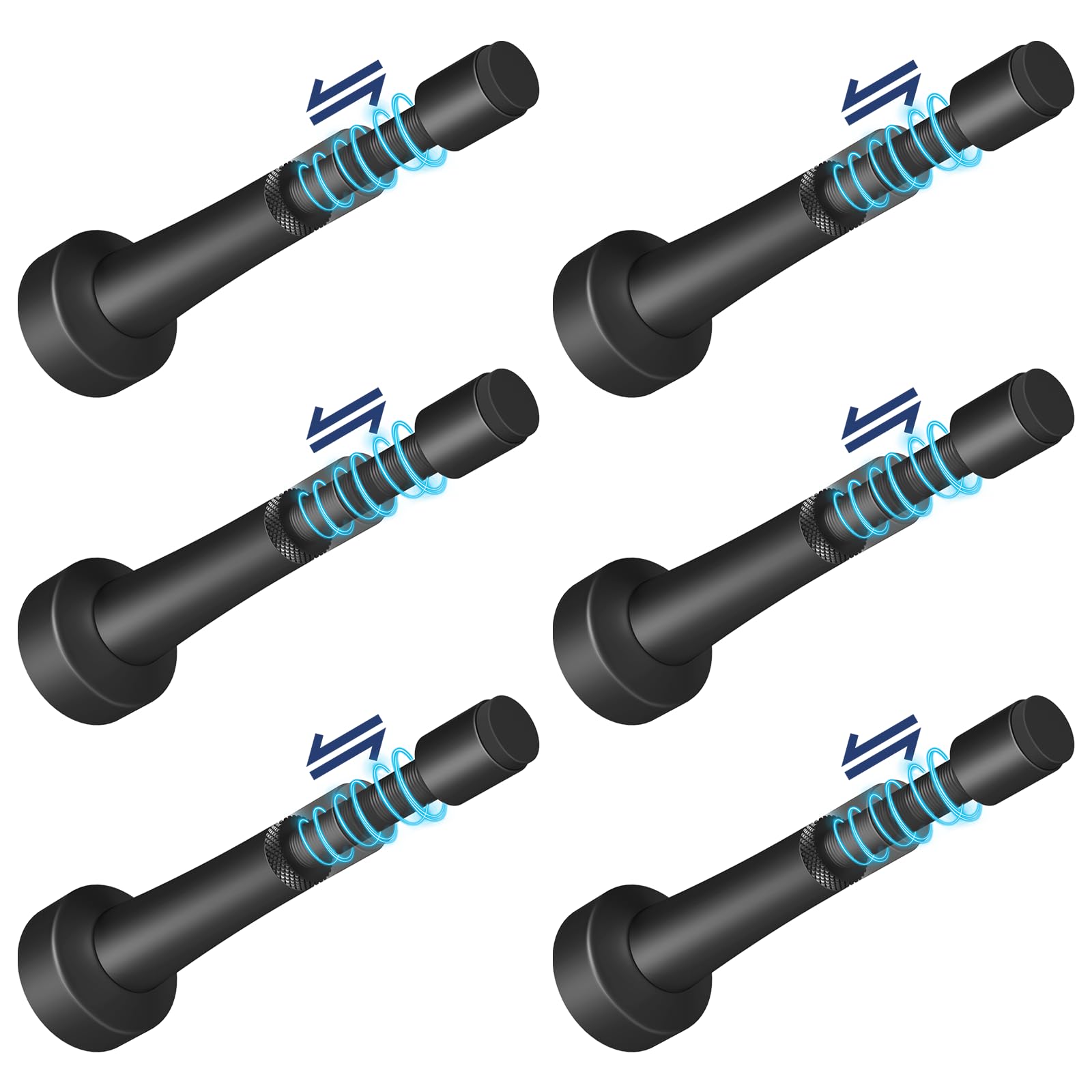 6Pcs Adjustable Door Stopper, 3.07-4.45in Aluminum Door Stoppers for Bottom of Door, Matte Black Door Stop for Wall with Silicone Tip, Screw & Adhesive Installation