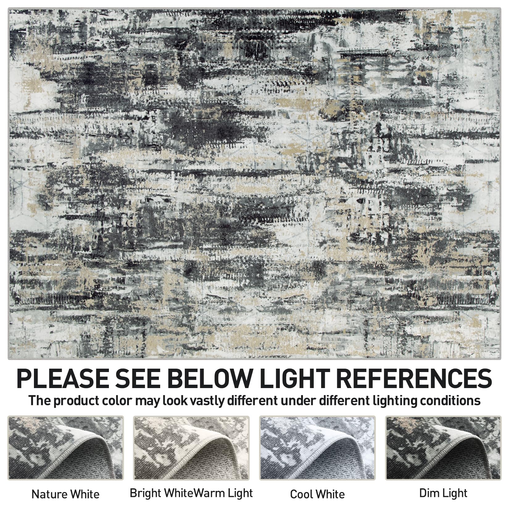 6x9 Area Rugs Washable Rug: Large Modern Abstract Living Room Rug Soft Anti-Skid Thin Carpet Indoor Floor Non-Shedding Carpets for Bedroom Dining Room Farmhouse Nursery Home Office Black Grey Gold