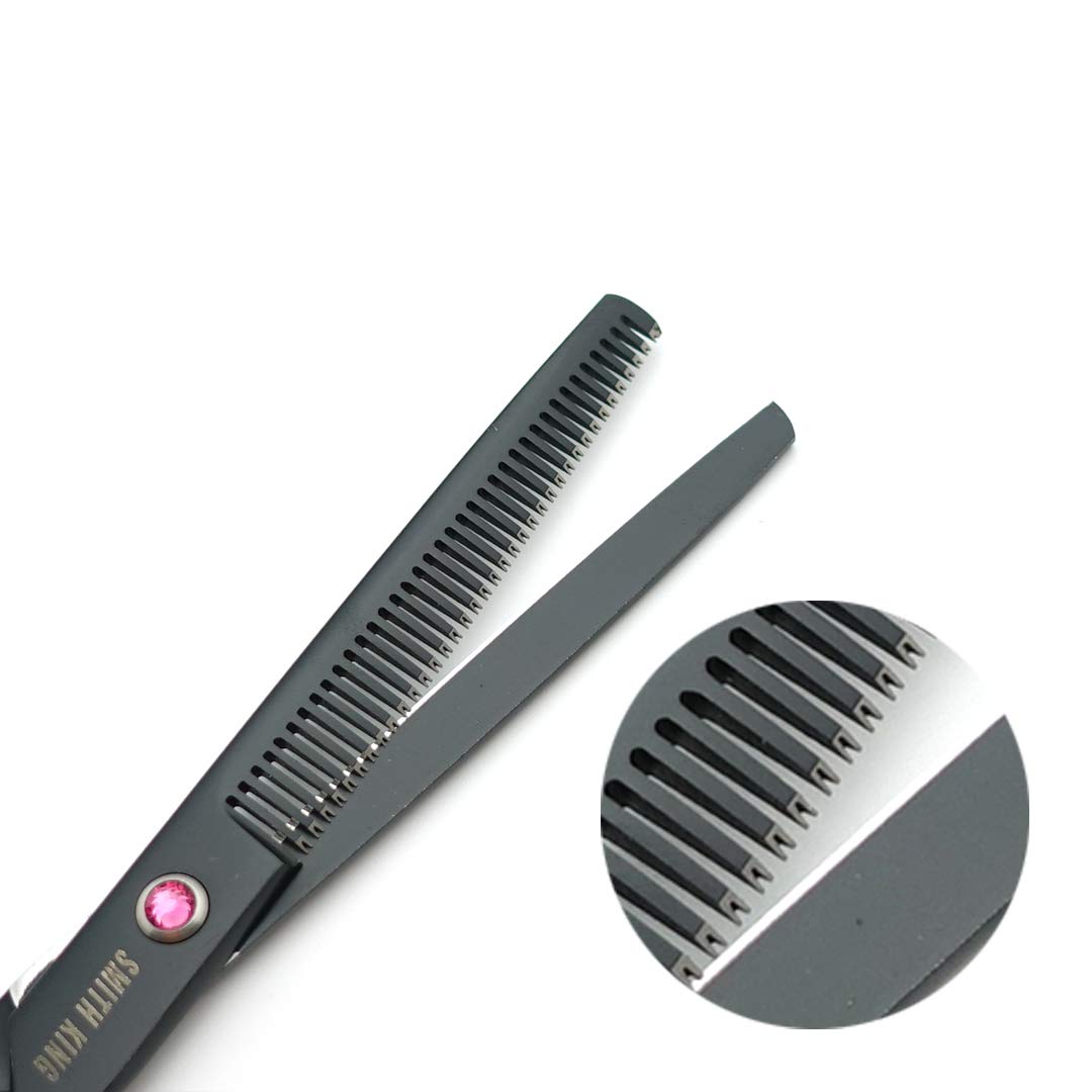 - SHARP CONVEX EDGE .The edge line of the blade is evenly polished, using the convex arc design to increase the thrust of scissors,to make the cutting more smooth and stable.With meticulously crafted clear tip of tooth ,the thinning scissors are sharp and do not clip the hair.