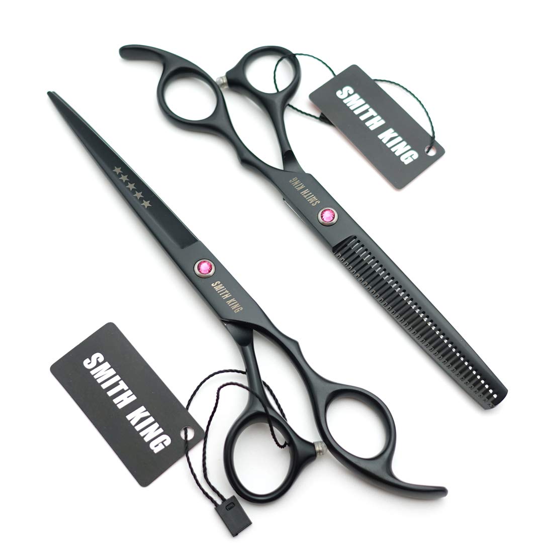 7.0 Inches Professional hair cutting thinning scissors set with razor (Black)