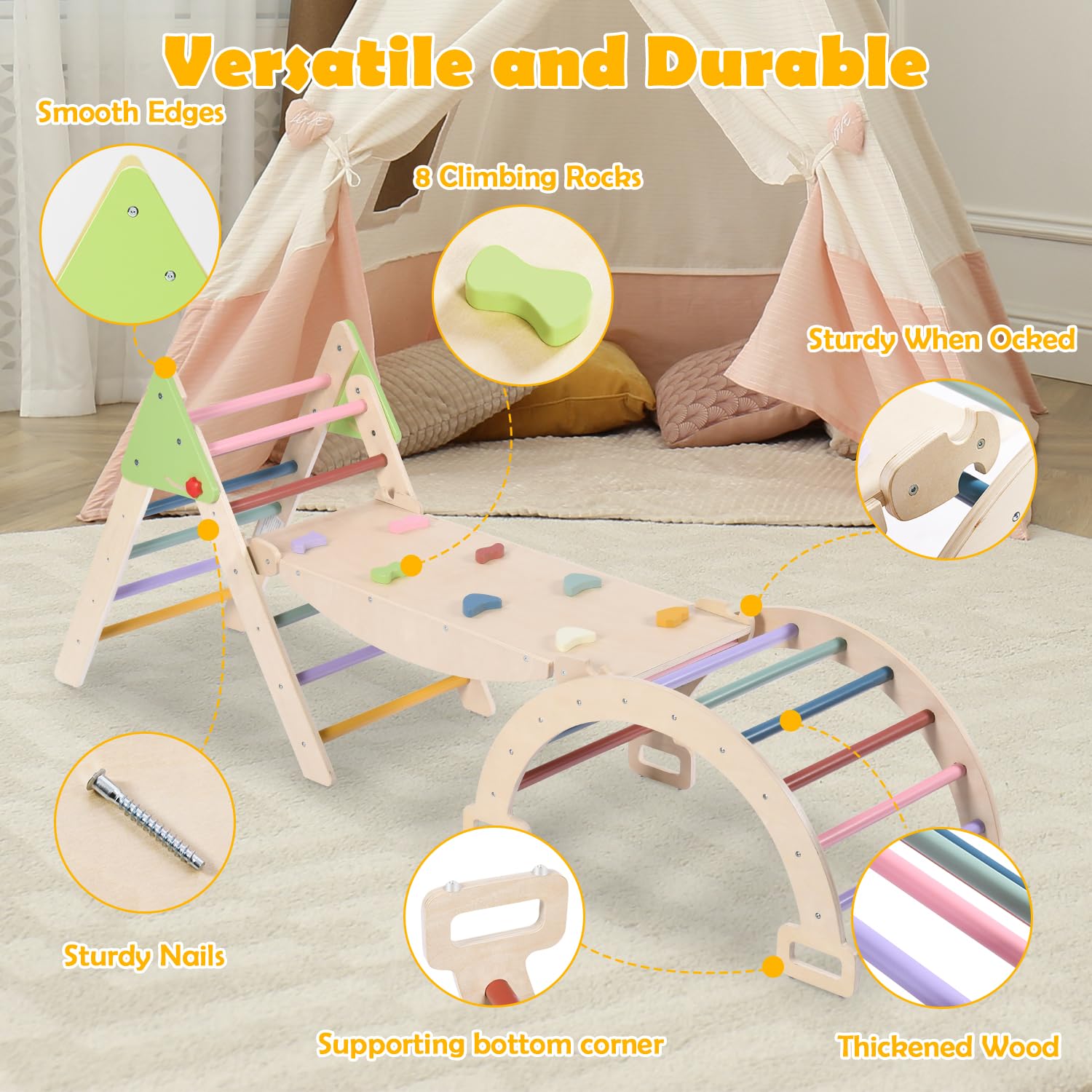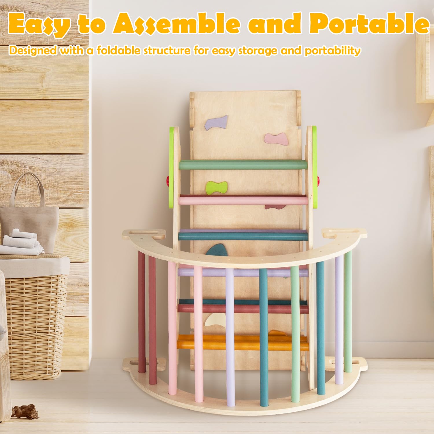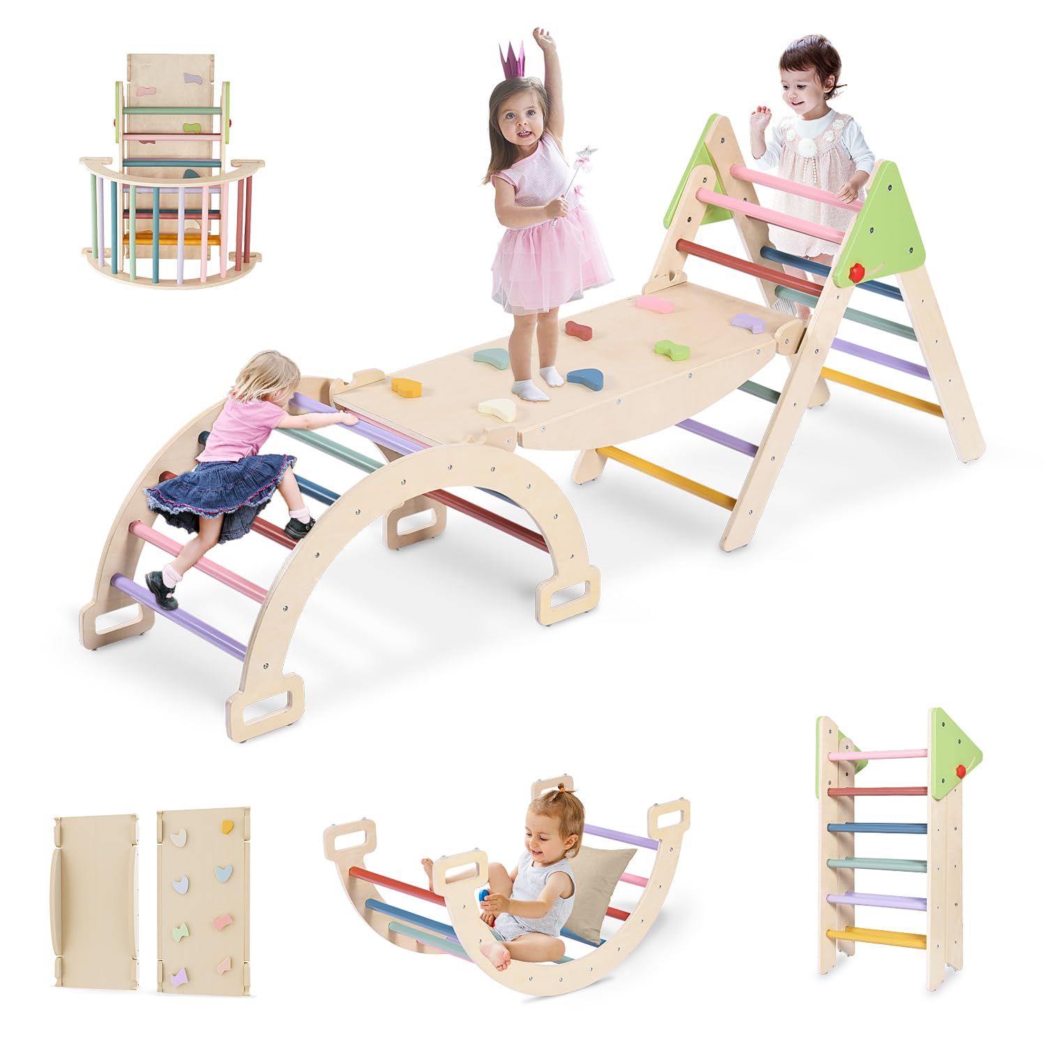 7 in 1 Wooden Pikler Triangle Set, Foldable Indoor Toddler Climbing Toys, Montessori Climbing Set for Children with Arch, Ramp, Ladder, Jungle Gyms for Kids, Baby Sensory Toys