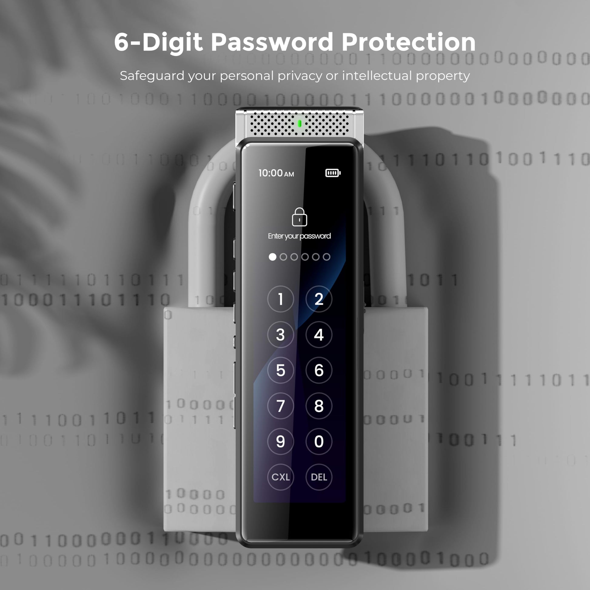 - Password Protection - The R1 handheld recorder offers robust 6-digit password protection, preventing any unauthorized access to safeguard your personal privacy or intellectual property