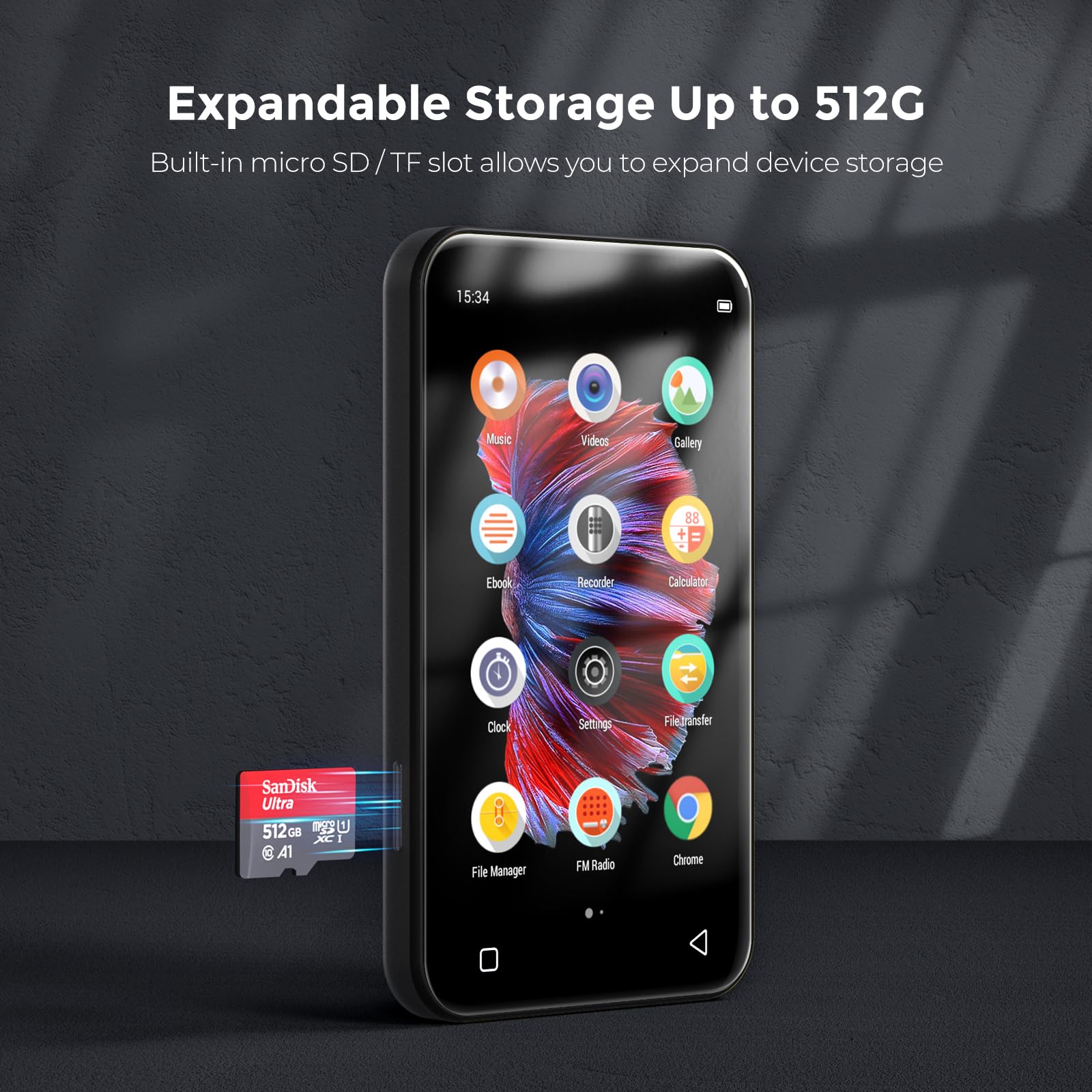 72GB WiFi Mp3 Player with Bluetooth, TIMMKOO 4.0" Full Touch Screen Mp3 Mp4 Player with Speaker, Portable HiFi Digital Music Player with FM Radio,Recorder, Ebook,Clock, Browser (Black)