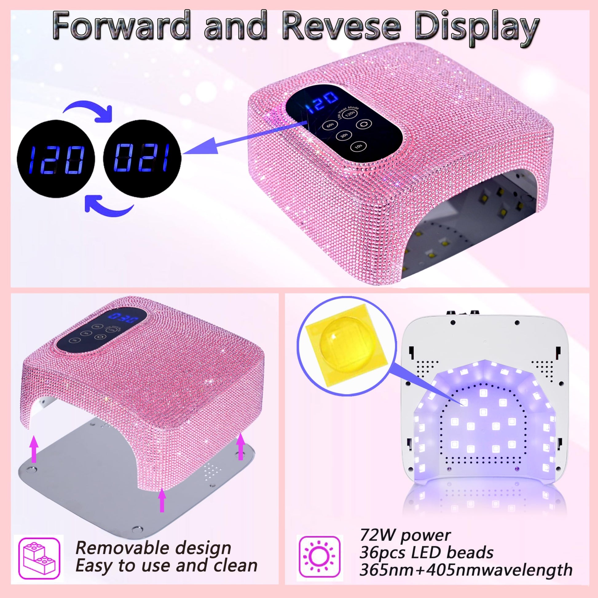 72W UV LED Nail Lamp,Rechargeable Cordless Nail Dryer,Portable UV Led Nail Light with Full Diamond on Surface,Professional Curing Gel Polish Acrylic Nails Tools for Home & Salon