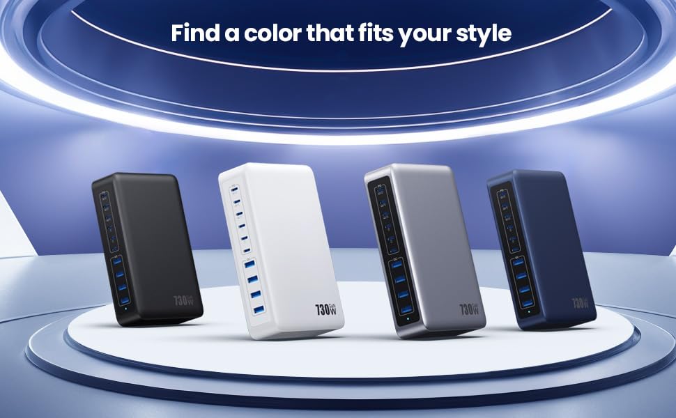 - 【10-IN-1 730W USB C Charger】We USB charging stations feature 730w total watt power, ensuring all devices can charge simultaneously at full speed without power sharing and disconnection. 6 USB-C & 4 USB-A output ports Independently, you just need one outlet to plug in 10 devices at once, includes laptops, tablets, smartphones and other small gadgets.