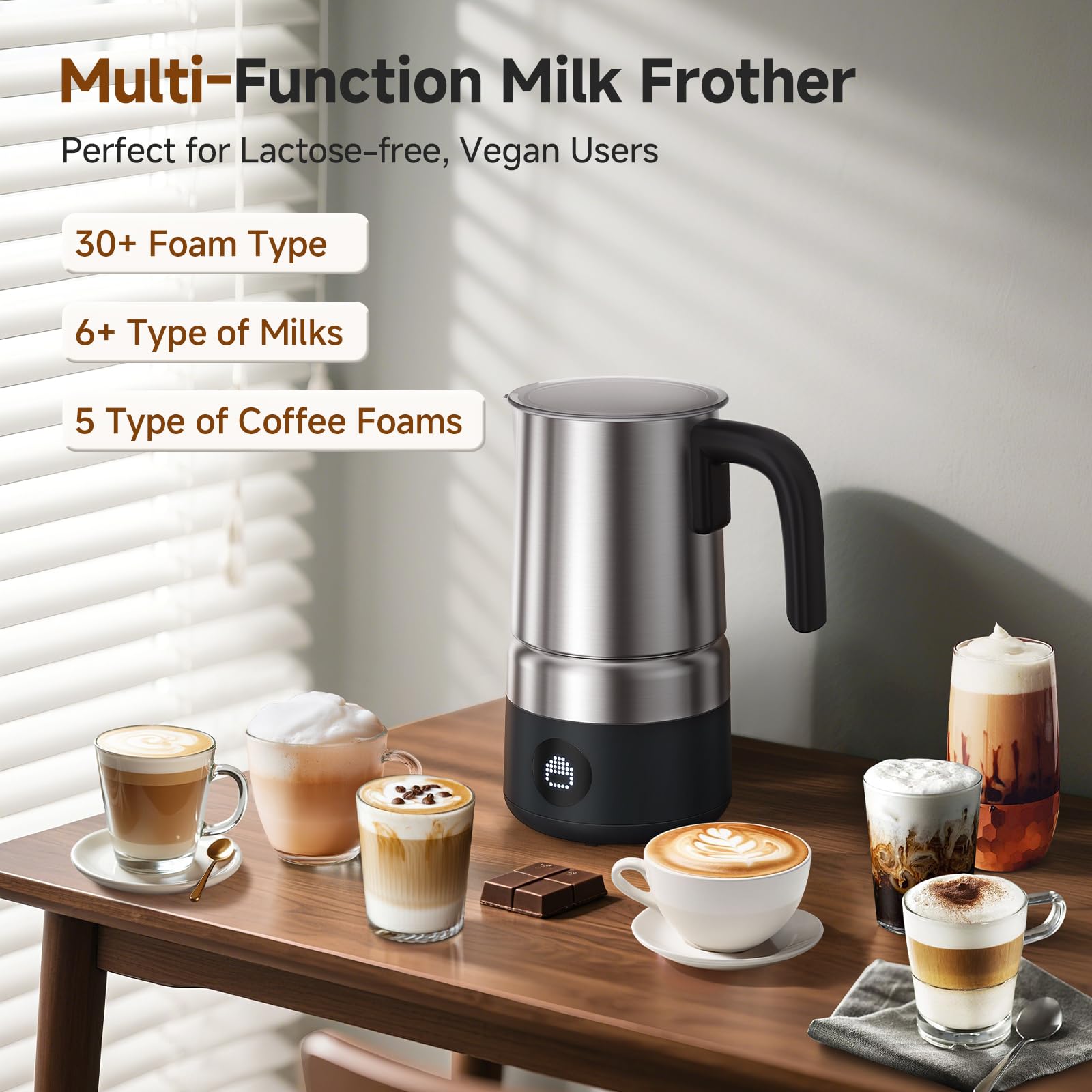 - Smart LED Touchscreen for Effortless Control: No guesswork, just perfect results! The intuitive LED display coffee frother lets you select modes and adjust settings with a tap. Even beginners can craft barista-level lattes, cappuccinos, or matcha drinks effortlessly