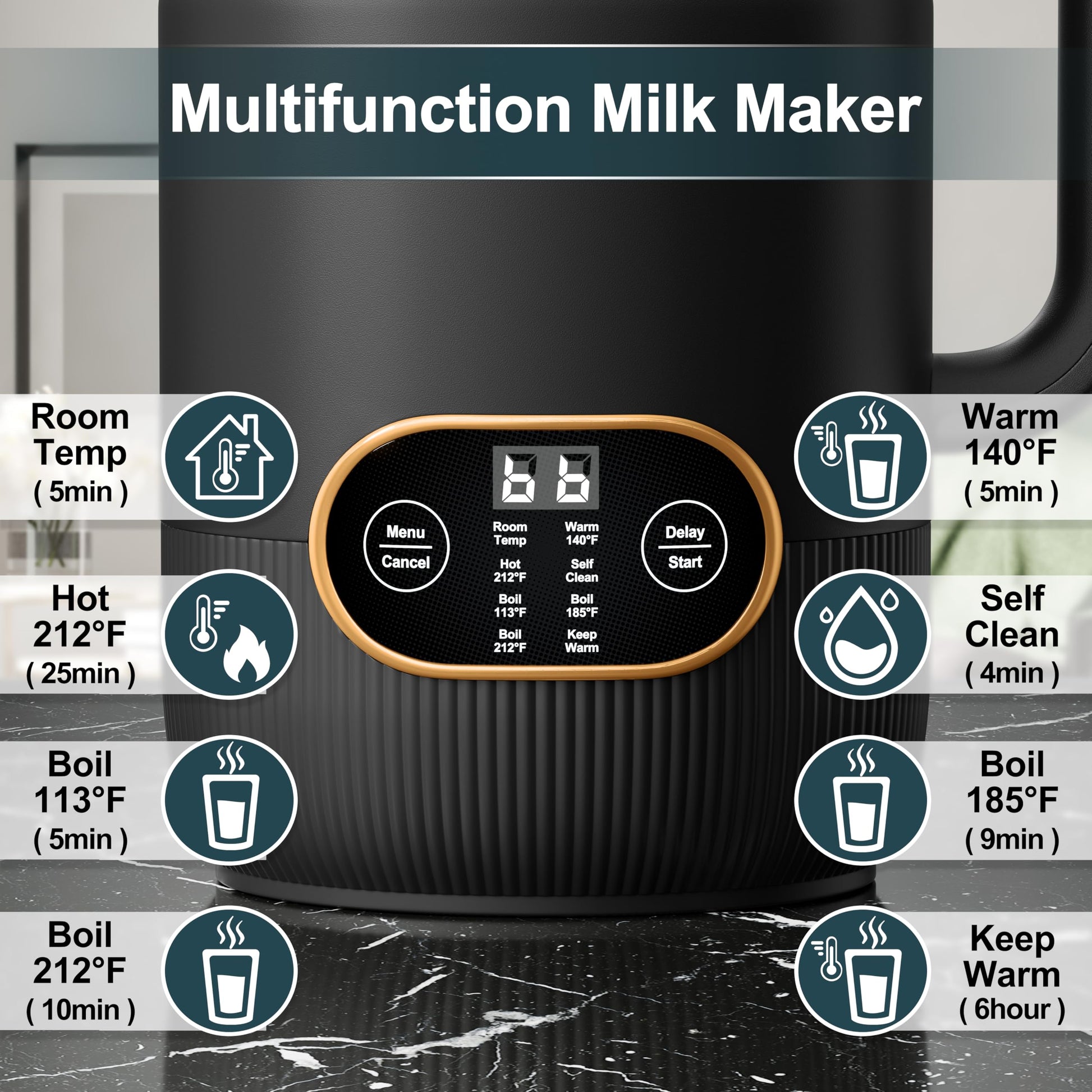 - 【Versatile 8-IN-1 Soybean Milk Maker】With Arcmira milk maker, you can skip the soaking step, which means less grunt work for you to make vegan milk. It has various functions to meet your needs. Room Temperature for almond milk and other chilled nut milk. Warm (140℉) for warm beverages. Hot (212℉) for making soy & rice milk. Also, it has Boil Water, Keep Warm(6hrs), Delay Start(18hrs) and Self-Clean functions.