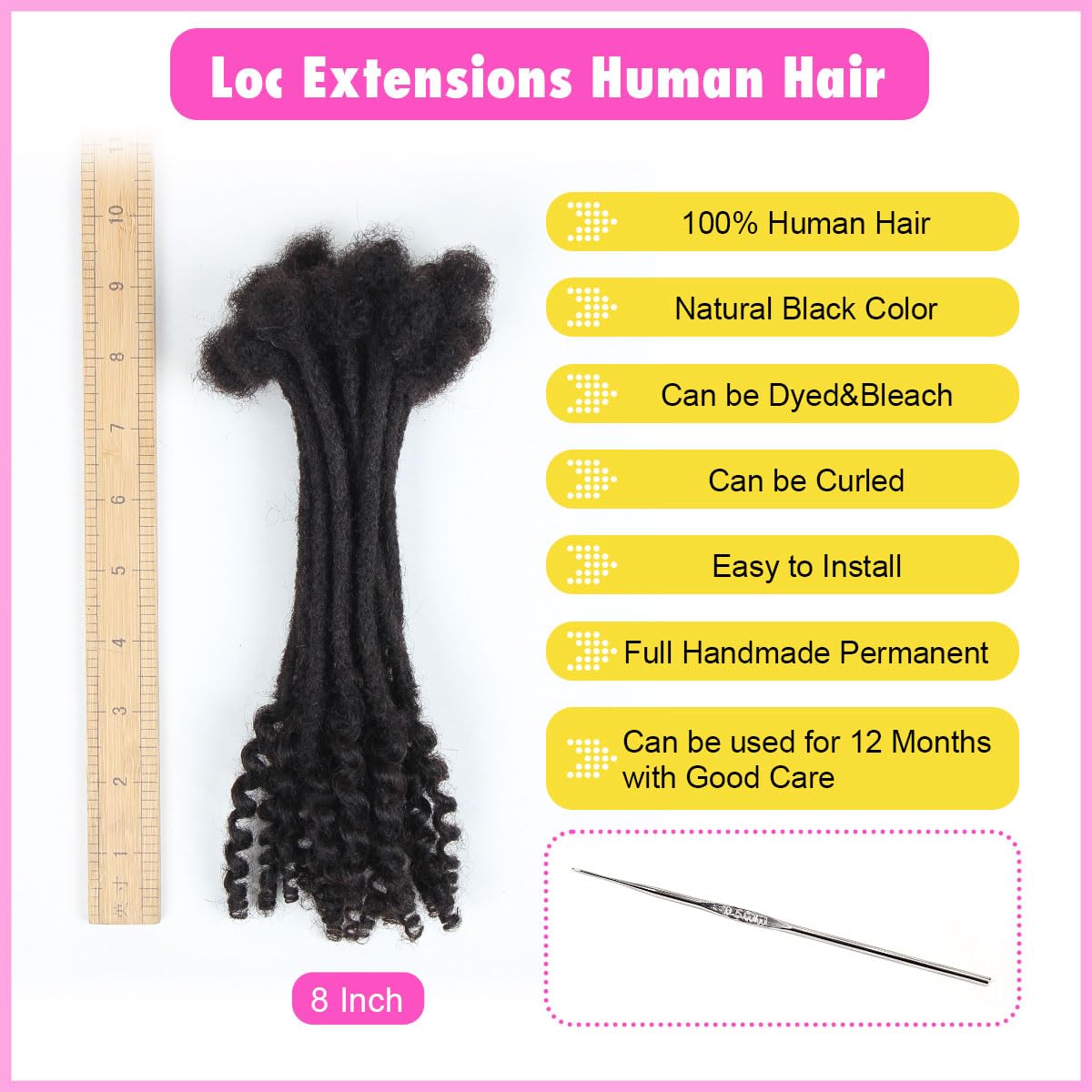 8 inch Loc Extensions Human Hair with Curly Ends, 0.4cm Width Permanent Dreadlock Extension Human Hair 20 Strands Natural Black 100% Full Handmade Dreads .Dyed and Bleached Pre Curled Drealocks
