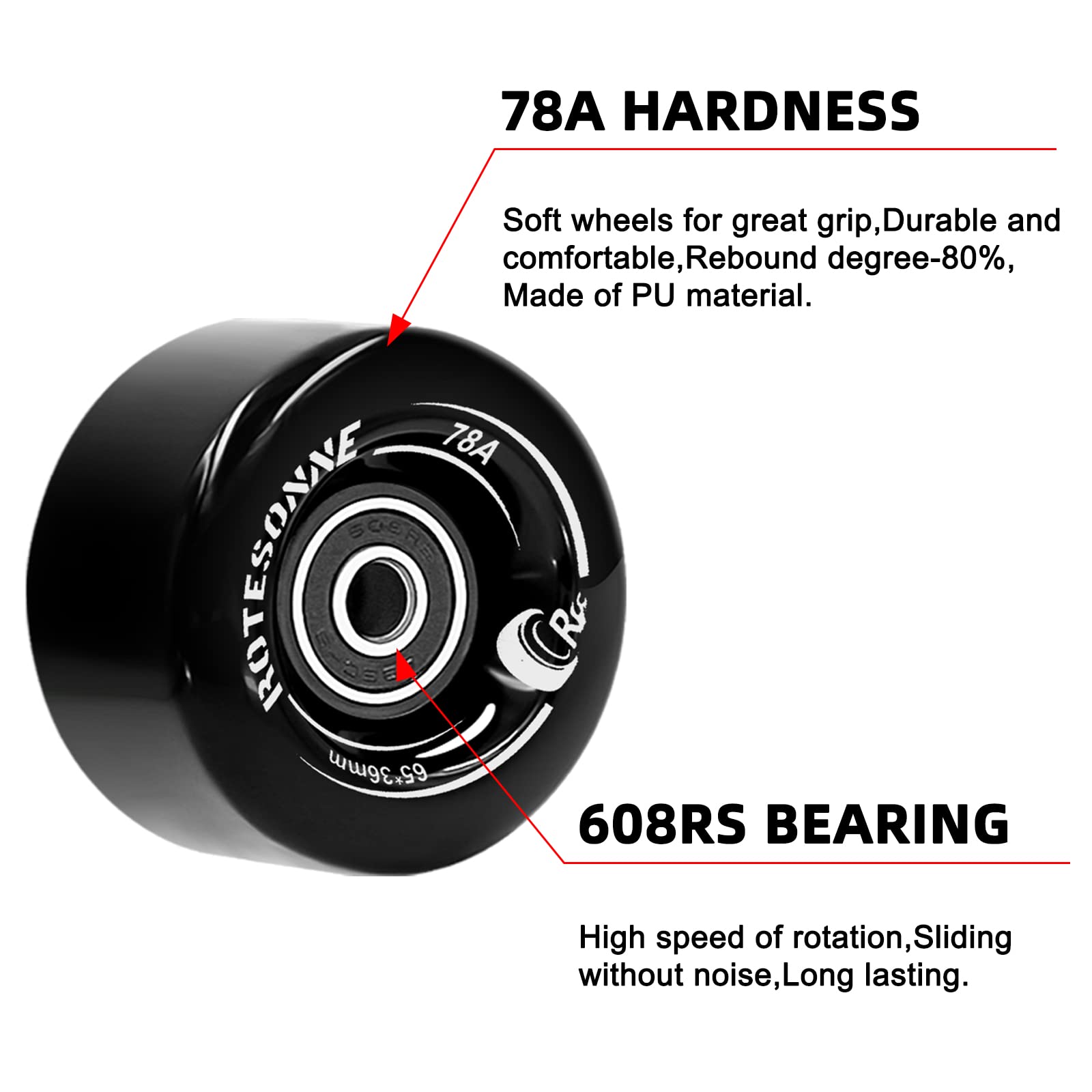 - 【65MM GREAT FOR BEGINNER】 65mm size is bigger than normal wheels, the larger contact area between the wheel and the ground makes the wheel more stable, and helps beginners maneuver securely and easily.