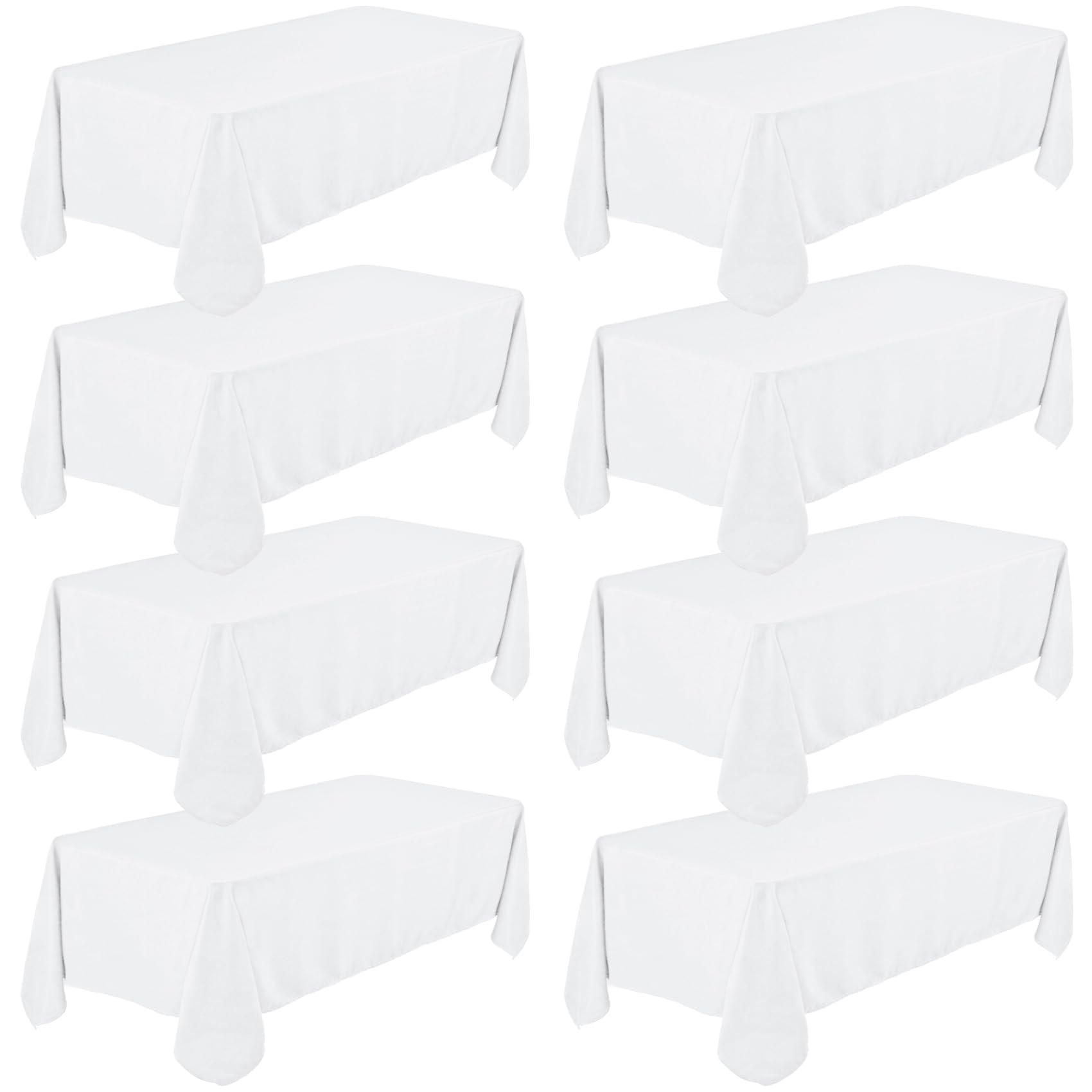 - Package Include: you will get 8 pieces white polyester rectangle tablecloth, enough quantity is suitable for wedding banquets and various parties, the size of each tablecloth is approximately 90x132 inches / 228x335 cm, which is large enough to cover 6FT or 8FT rectangle tables, classic in color and exquisite in design, the solid color makes them suitable for various occasions, instantly heightening the elegance of your table.