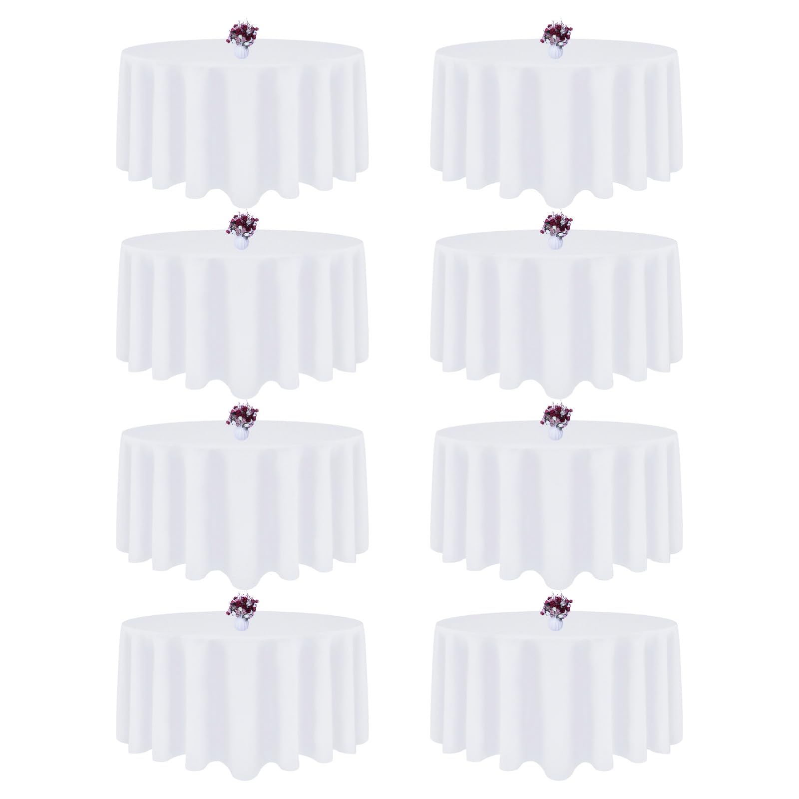 8 Packs Round Tablecloth 90 Inch White Table Cloth for Circle Tables, Washable Polyester Fabric Tablecloths, Wrinkle Resistant Table Cloth Round Cover for Wedding Party Banquet Dining