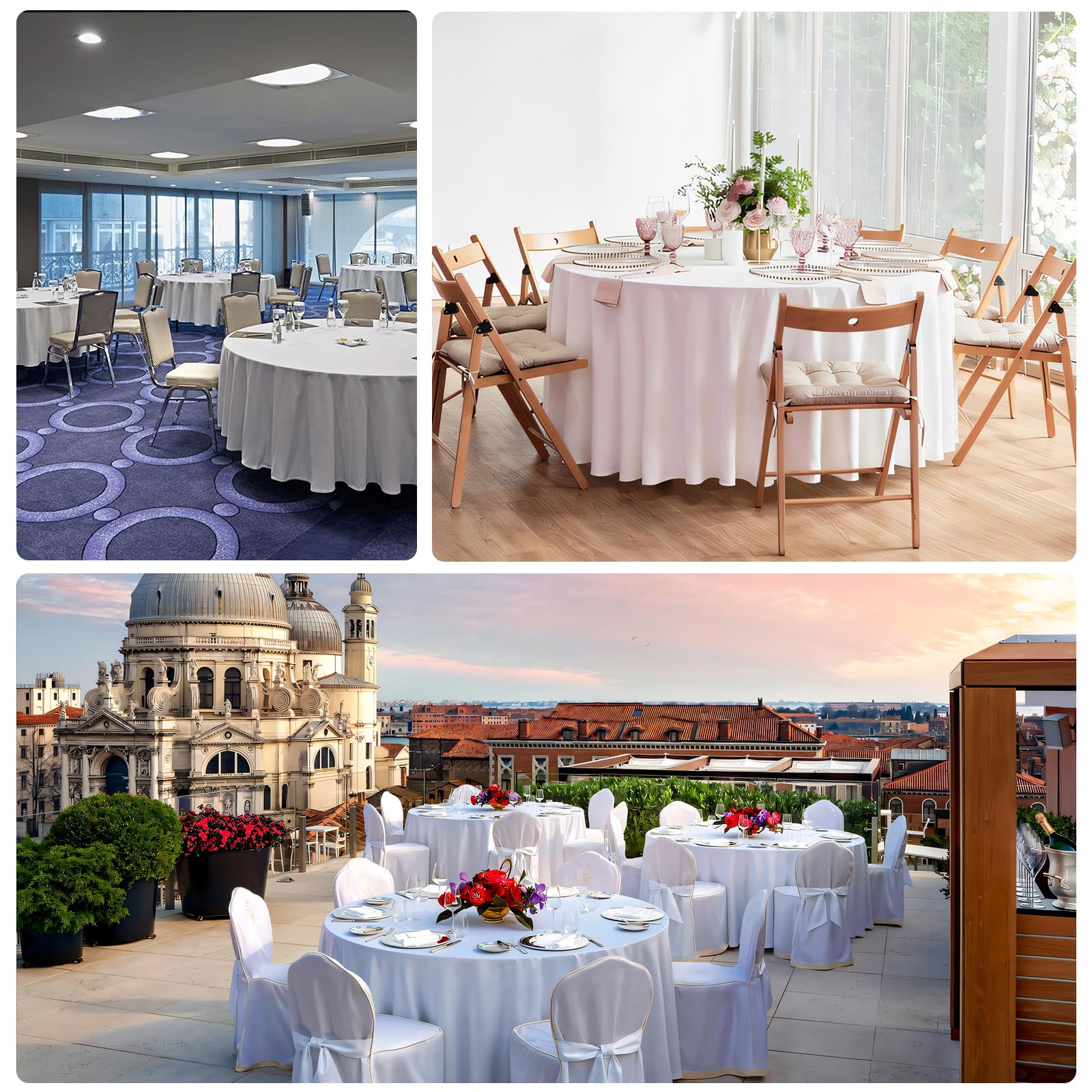 - 【Versatile Use】 Our white round table cloth also keep in trend as the main tablecloth for weddings, buffet dinners, dining tables, restaurants, party, birthday, banquet, catering services, indoor, outdoor and corporate events.
