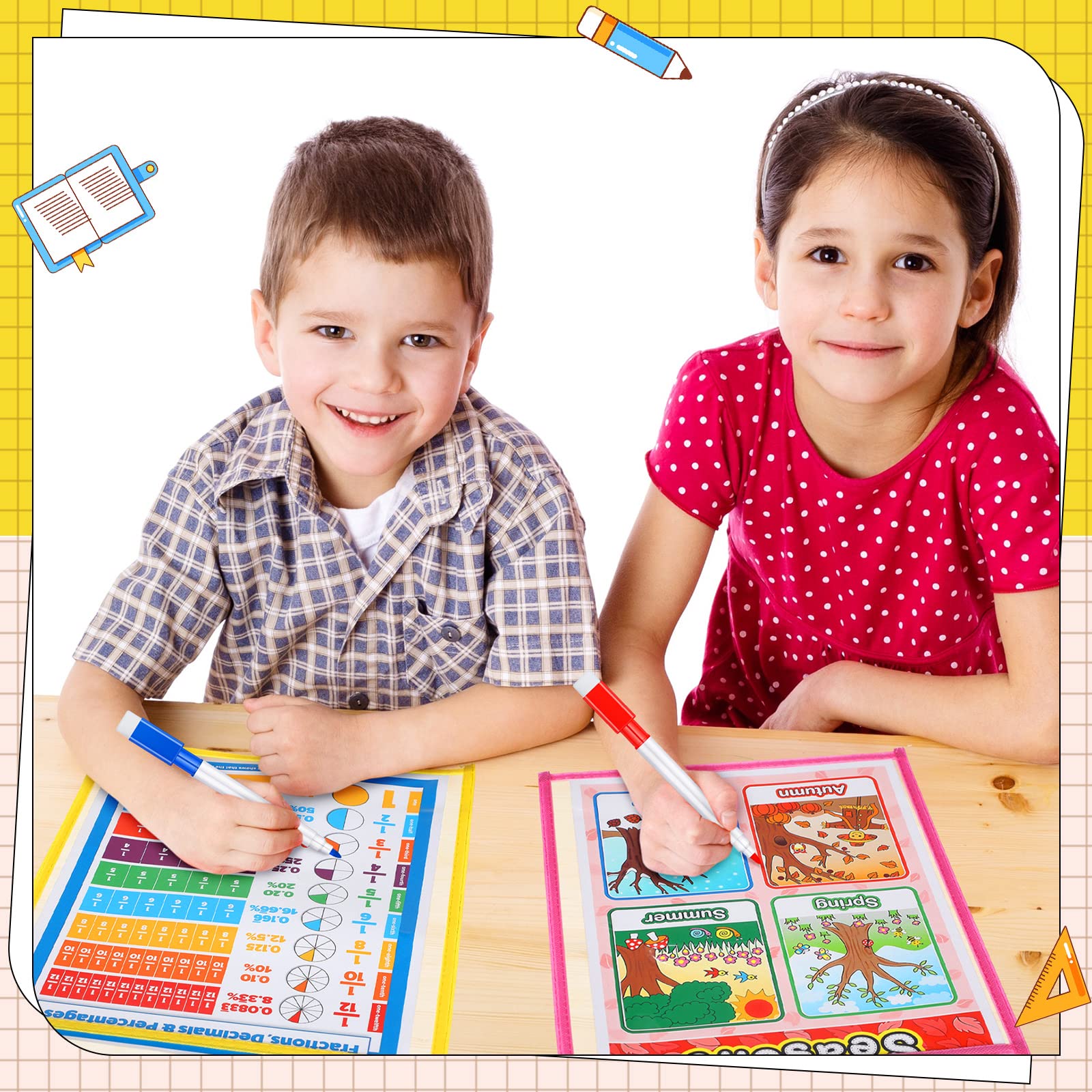 - Reliable Material: these waterproof sheet protectors are made of plastic with double stitching along the edge of each pocket; We are designed and manufactured to high standards, the plastic dry erase sheets are nice teaching tools, and they can hold up so long, even if you use a few months they will not easily collapse, can hold up to the wear and tear of kids