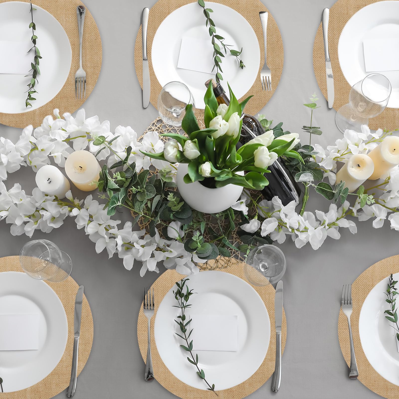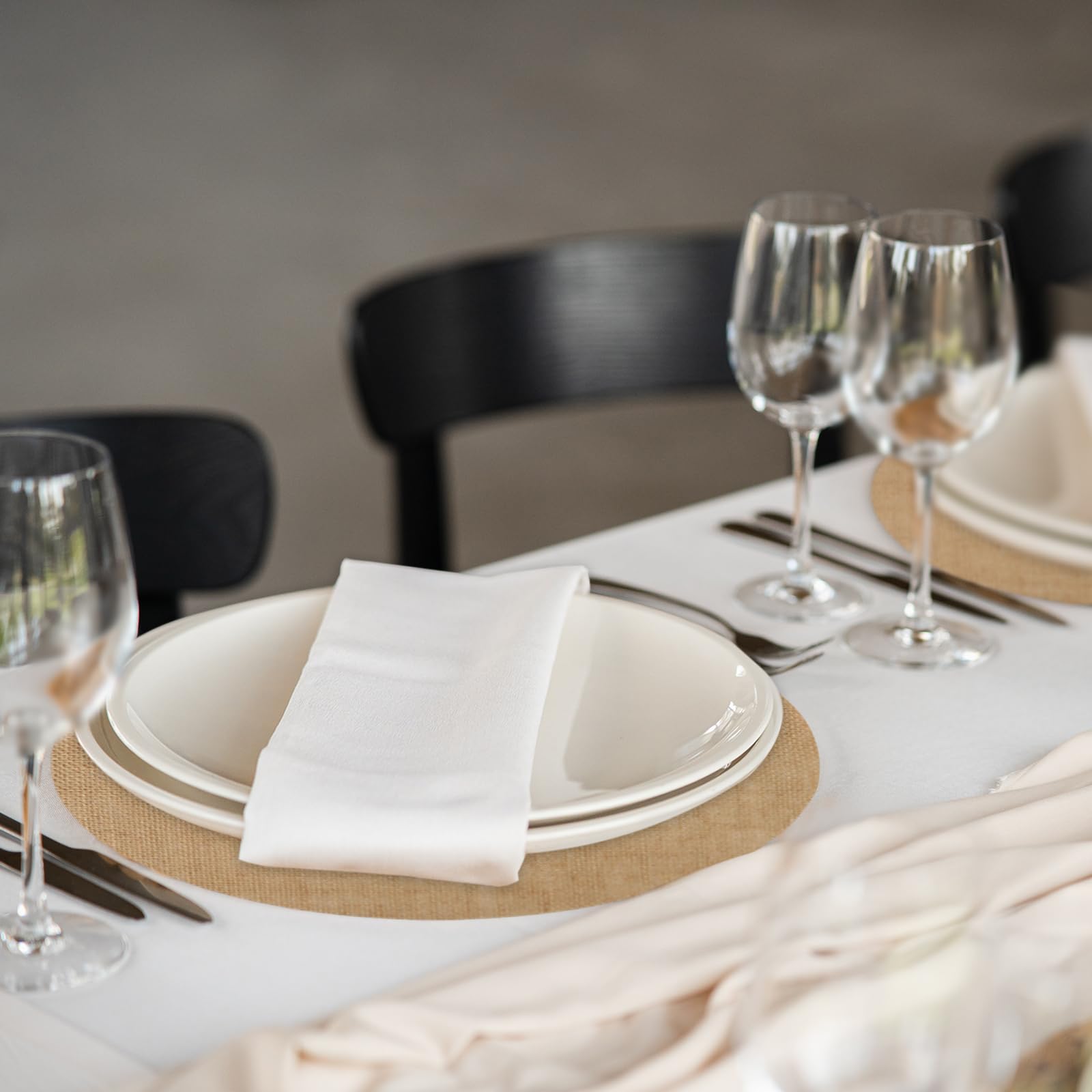 - Functional and Stylish: Round burlap placemats perfectly blend functionality and style. Their understated design enhances the dining experience, transforming ordinary meals into memorable moments and infusing the table setting with warmth and a rustic charm