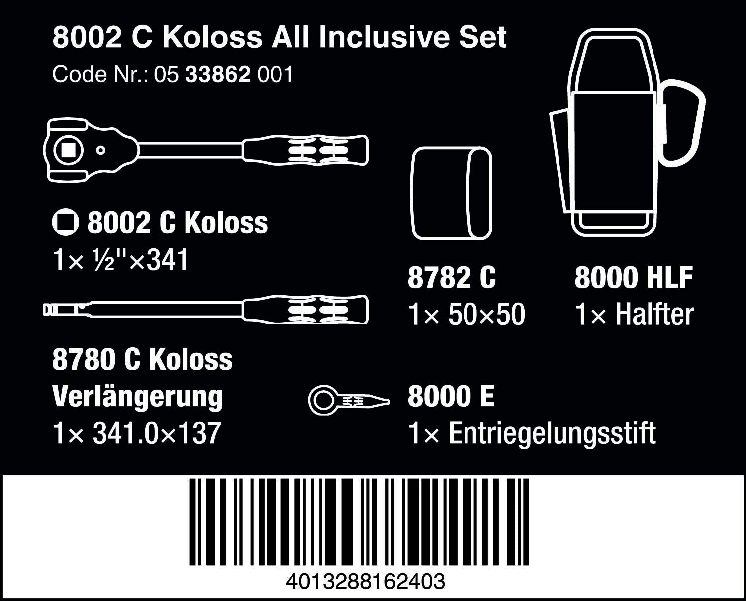 Details: Wera Tools 05133862001 8002 C KOLOSS 1/2" ALL INCLUSIVE SET SB DRIVE ACCESSORY