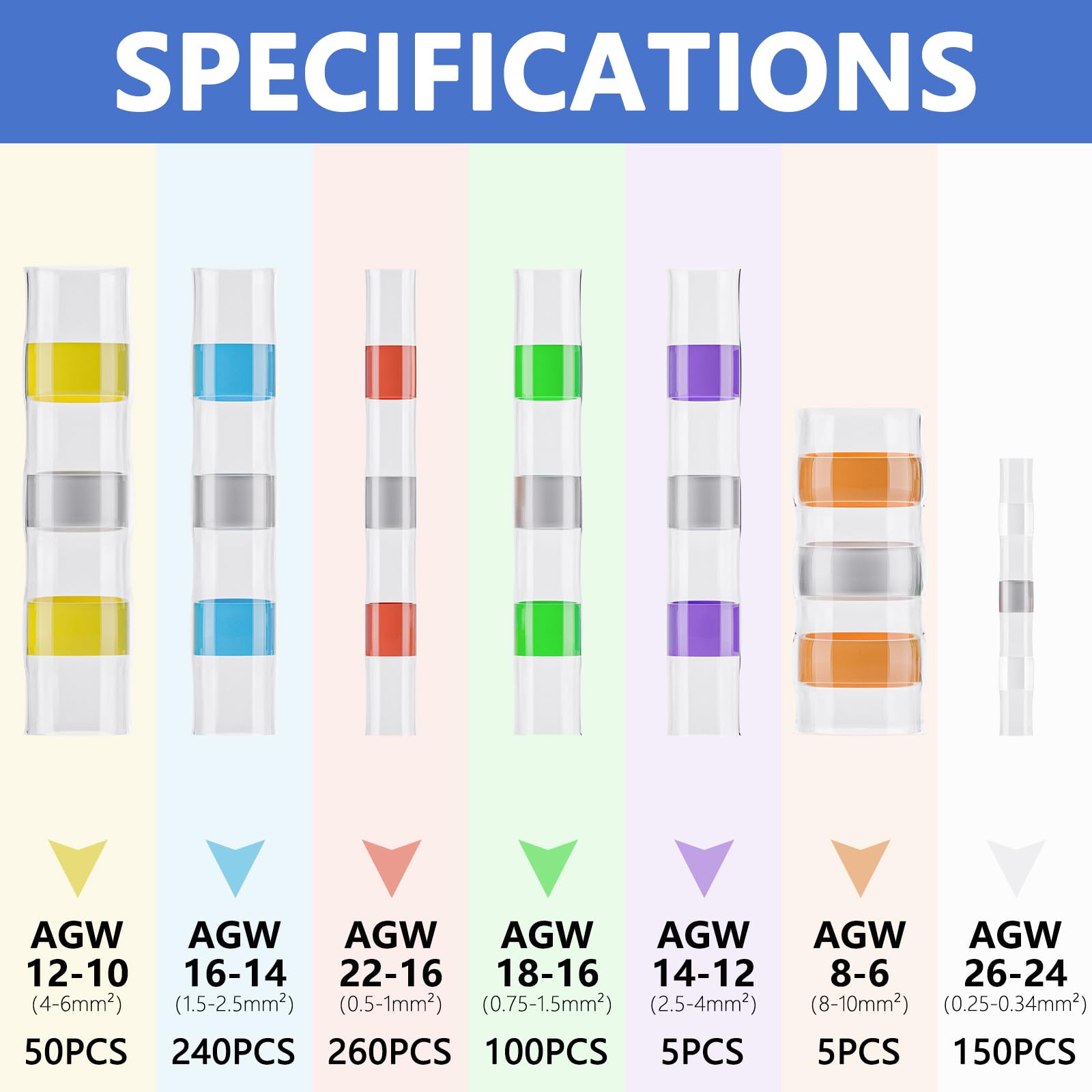 - DURABLE SOLDER CONNECTORS: These connectors are made from premium materials designed to withstand harsh environments, protecting cables from abrasion, cutting situations,ensures a long-lasting and secure connection for your application