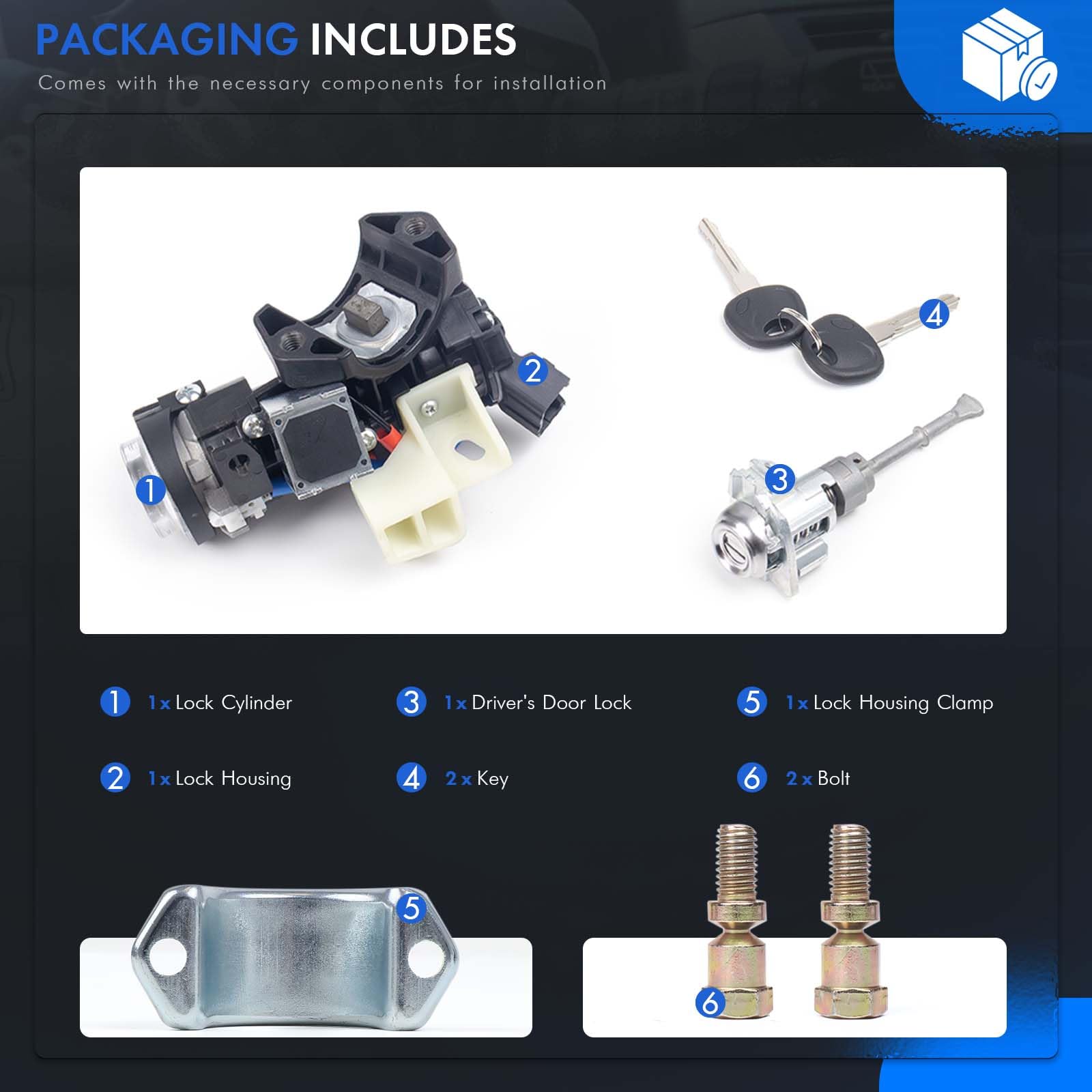 - [Package Include]: Ignition Lock Housing [1]; Lock Cylinder [1]; Left Driver's Door Lock [1]; Bolt [2]; Lock Housing Clamp [1]; Key [2]