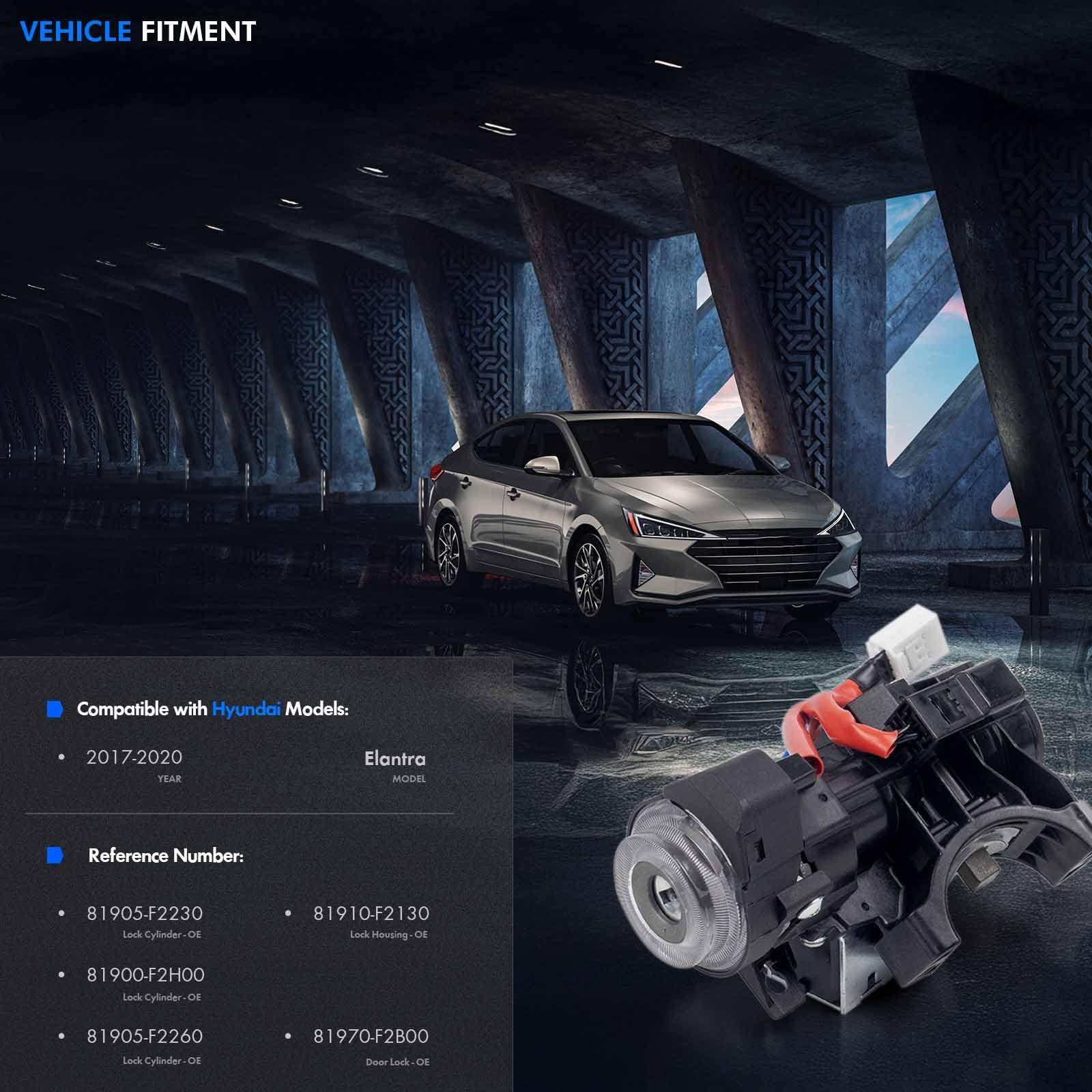 81905-F2230 Ignition Lock Switch Assembly with Door Lock Cylinder & Keys Fit for Hyundai Elantra 2017-2020 Ignition Lock Cylinder with Housing Replace# 81910-F2130, 81970-F2B00, 81900-F2H00
