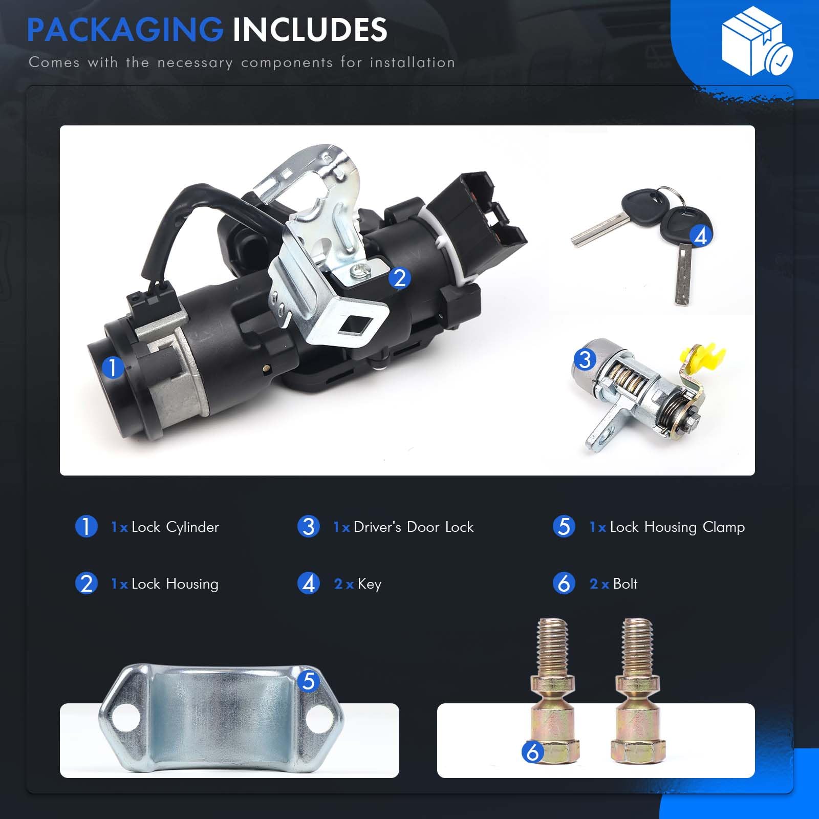 - [Package Include]: Ignition Lock Housing [1]; Lock Cylinder [1]; Driver's FL Door Lock [1]; Bolt [2]; Lock Housing Clamp [1]; Key [2]