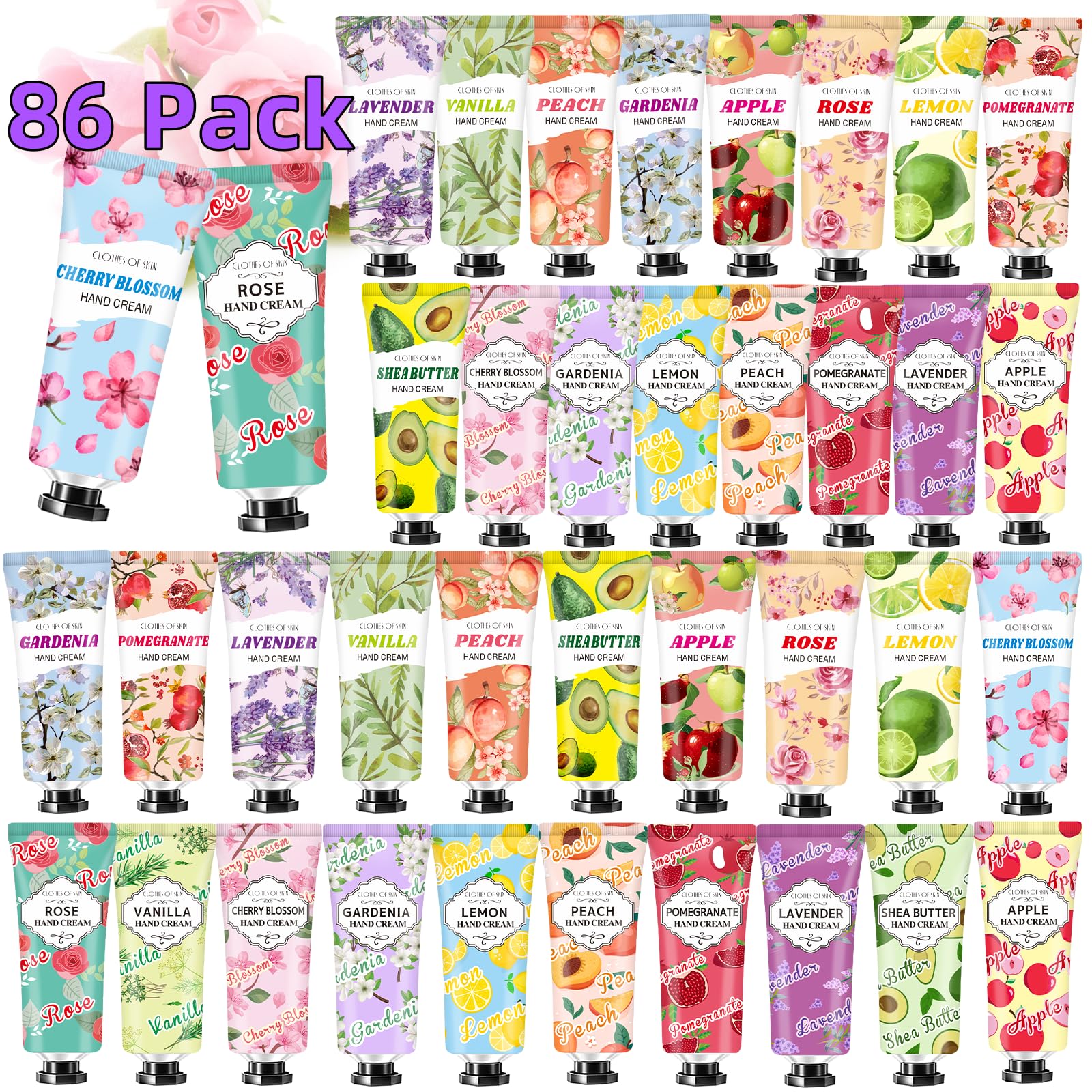 - 86 Pack Hand Cream Gift Set: This hand lotion gift set makes the perfect stocking stuffers gifts for women.The ideal for Mother's Day Gifts,Valentine's Gifts, Christmas Gifts,Baby Shower Favors,Bridal Shower Favors, Party Gifts,Birthdays Gifts,Nurses Week Gifts,Employee Appreciation Gifts,Employee Appreciation gifts,Bridesmaid Gift,bachelorette party prizes and so on. A wonderful gift for girlfriend,wife,mom,grandma,sister and so on