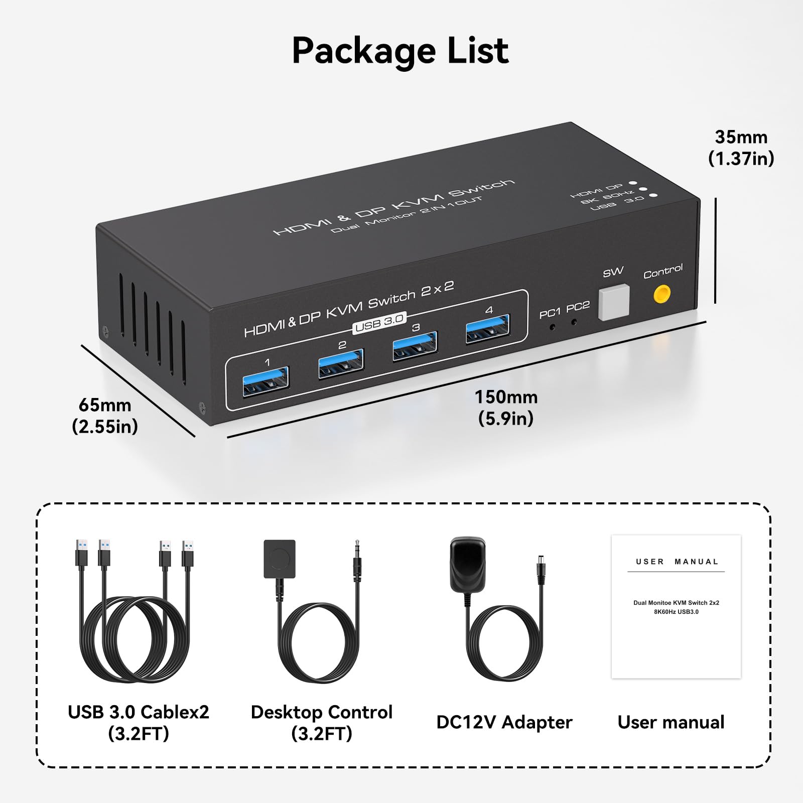 8K60Hz KVM Switch 2 Monitors 2 Computers 4K120Hz HDMI Displayport KVM Switches Dual Monitor for 2 PC Share Mouse Keyboard and 2 Displays Support Extended/Copy Mode with Extended Controller