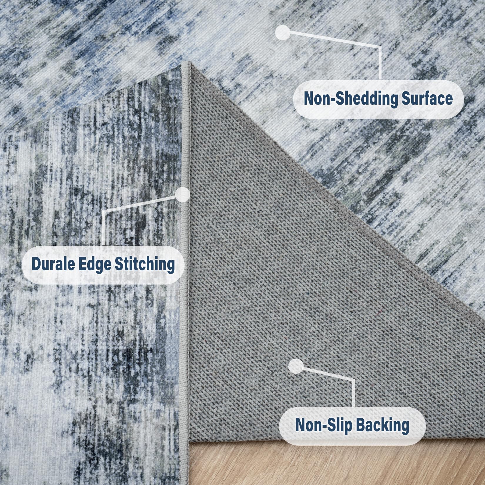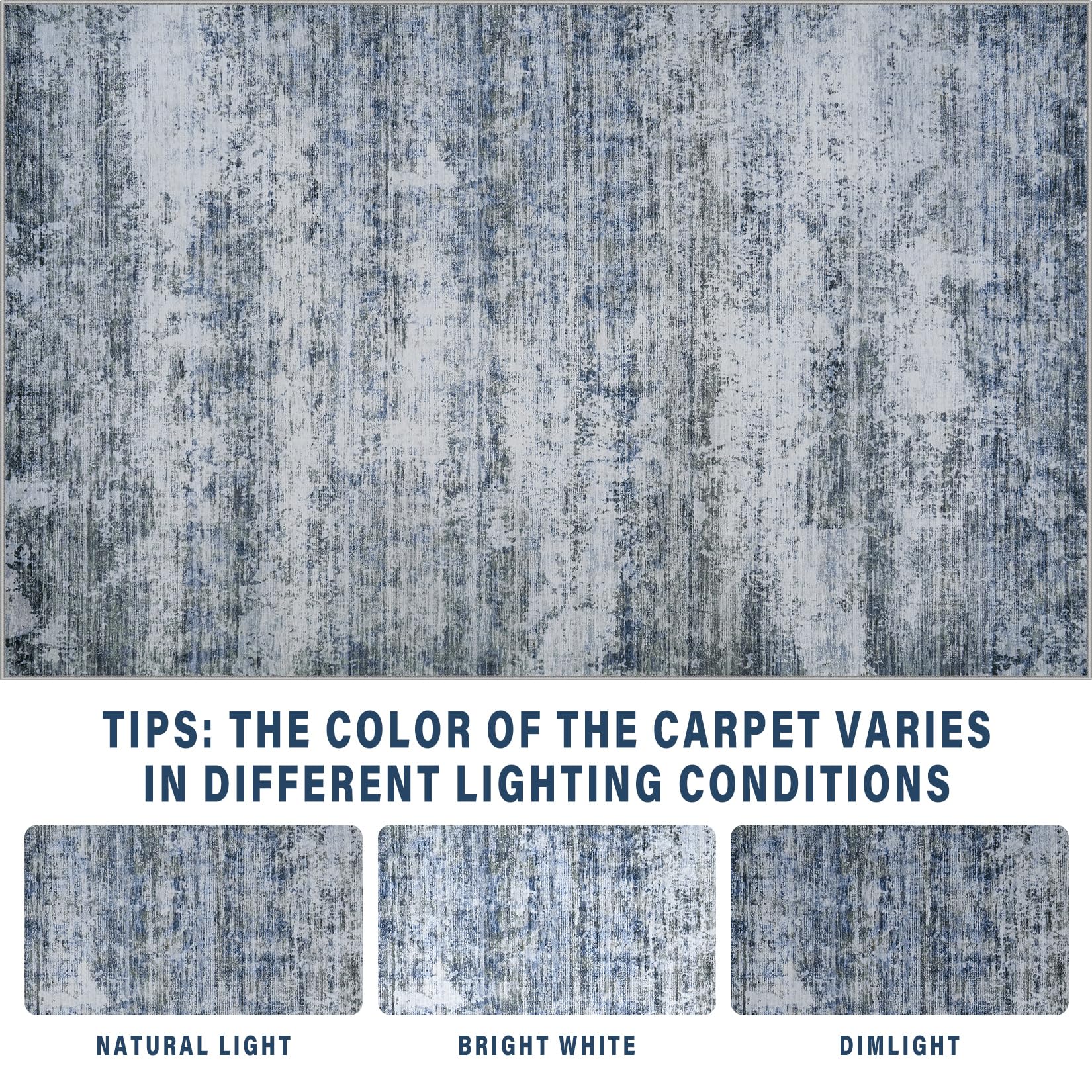 8x10 Area Rugs for Living Room: Large Machine Washable Area Rug with Non Slip Backing Non Shedding Abstract Stain Resistant Carpet for Bedroom Dining Room Nursery Home Office - Blue/Gray