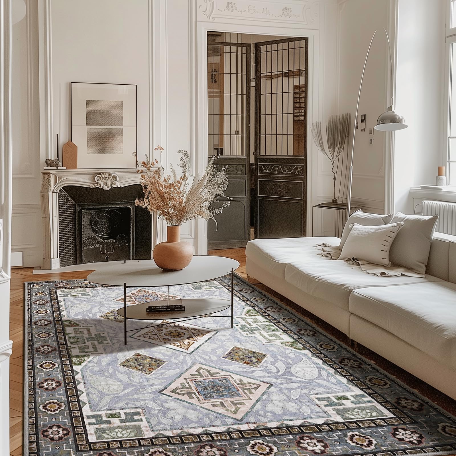 - LOW PILE SOFT DESIGN: Our washable rugs are made from high quality marterials for a beautiful look and feel that won't fade and is velvet touch on the feet. In addition, these area rugs have excellent wear resistance and are easy to maintain in shape, making them ideal for high traffic areas such as entrance halls, living rooms, bedrooms, dining rooms and all types of rooms with pets or children.
