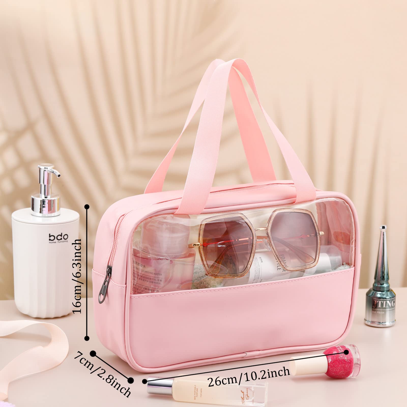 - Waterproof Material: the clear travel bags for toiletries are made of quality watertight PU leather and transparent PVC material, reliable and thick; Design with translucent material and a large opening zipper, allowing you clearly see through for easy find and quickly access to what you need