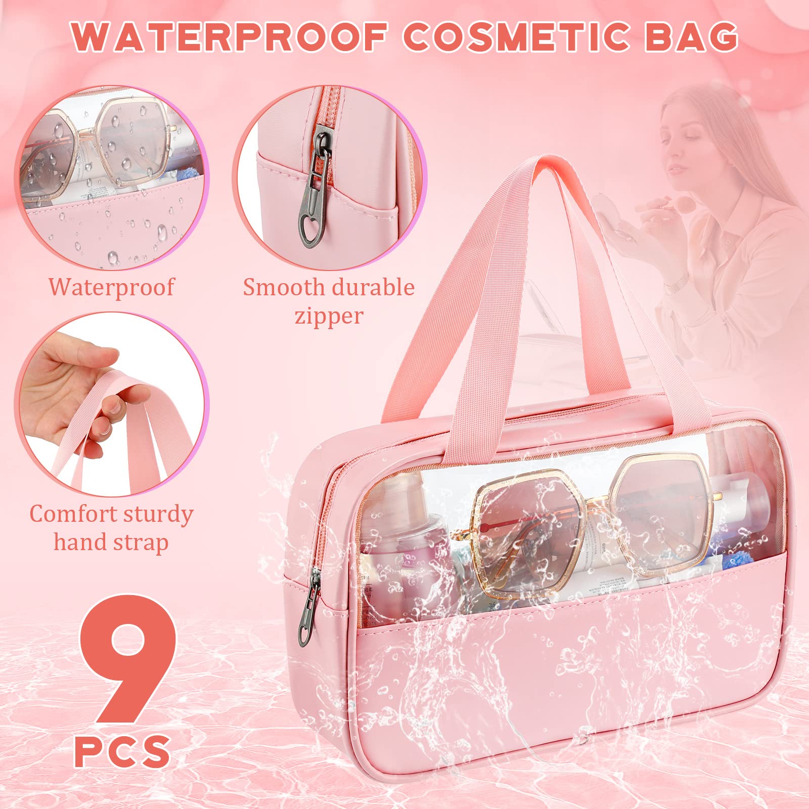 - What Can You Get: contains 9 pieces of pink cosmetic bags for women, enough quantities and classic color to allow you to use and replace them as you like, the pink color also suitable for you to share with your mother, daughter, sisters and more, which can easily match the clothing