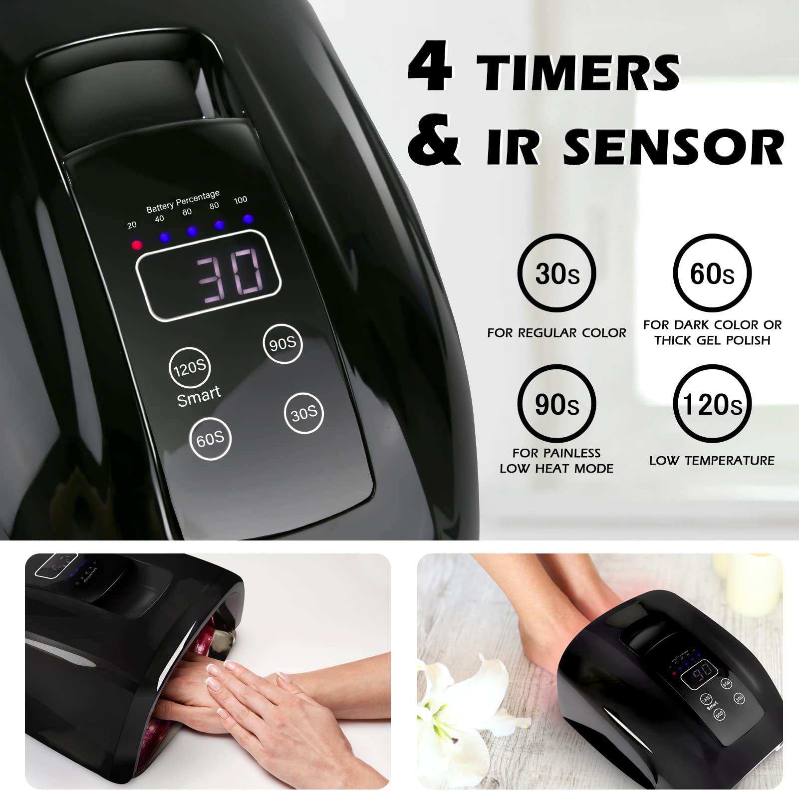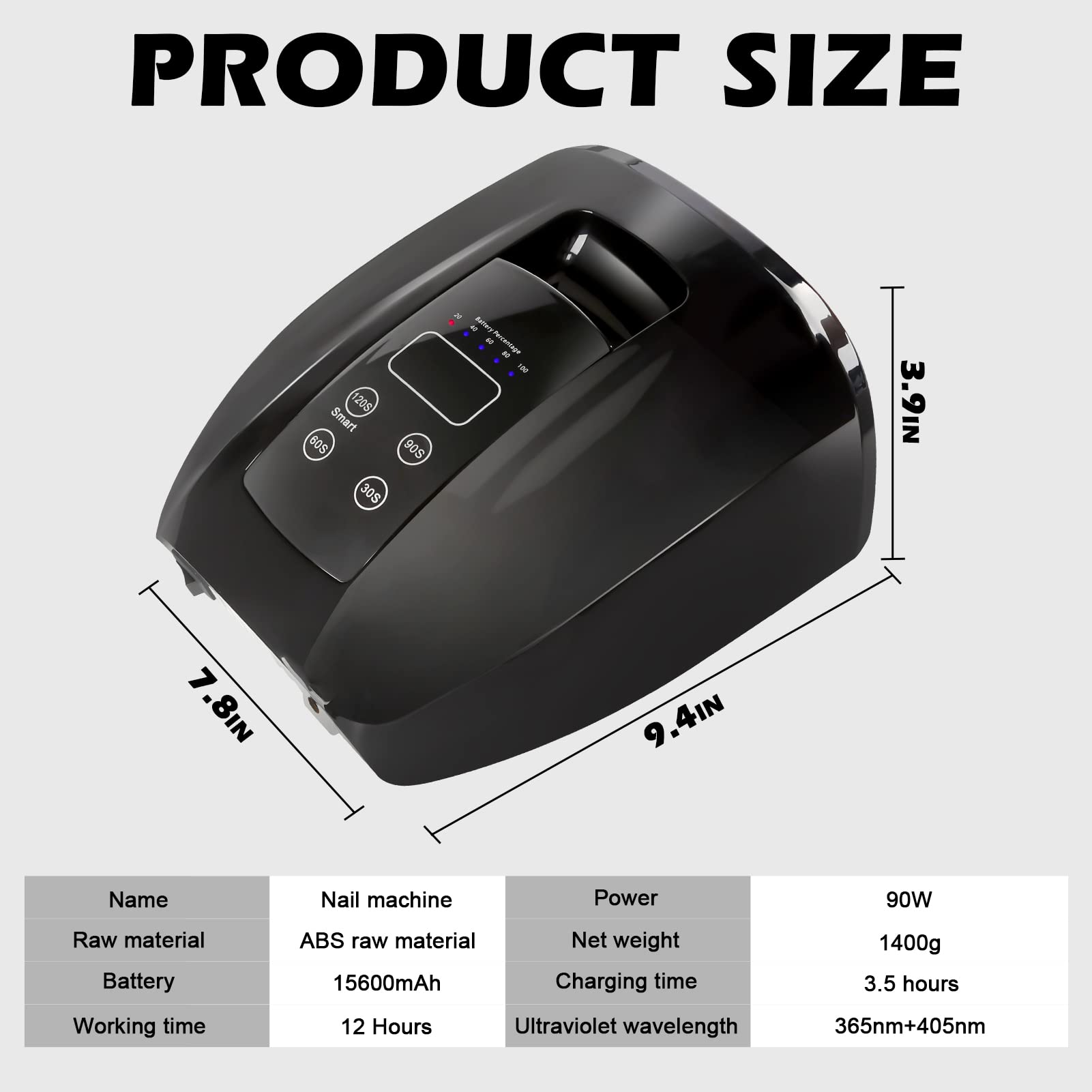 90W Professional Wireless Cordless Rechargeable UV LED Nail Lamp,Nail Lamp Gel Nail Curing Dryer Light for Nails with 45 Beads,4 Timer Setting LCD Display Nail Polish Machine (Black)