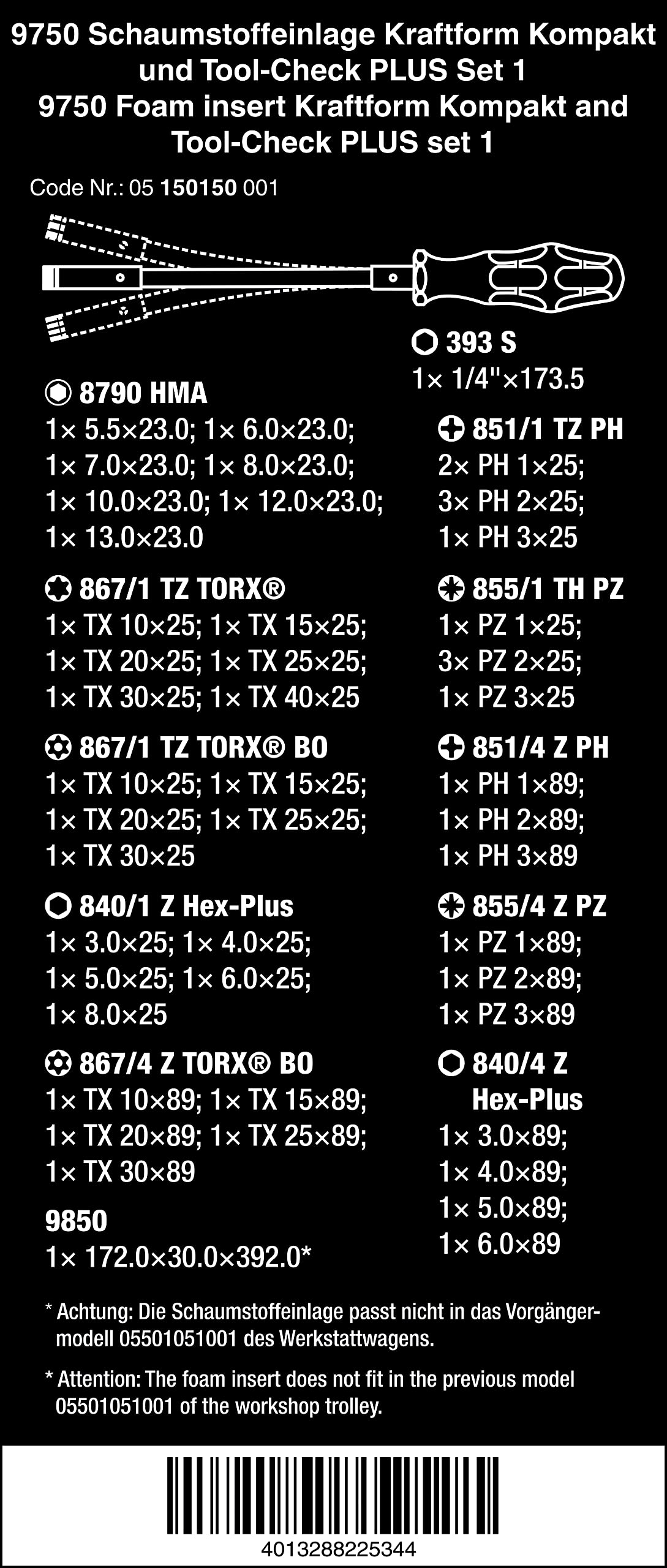 Details: Wera Tools 05150150001 9750 Foam Insert "Kraftform- and Tool-Check Plus Set 1"