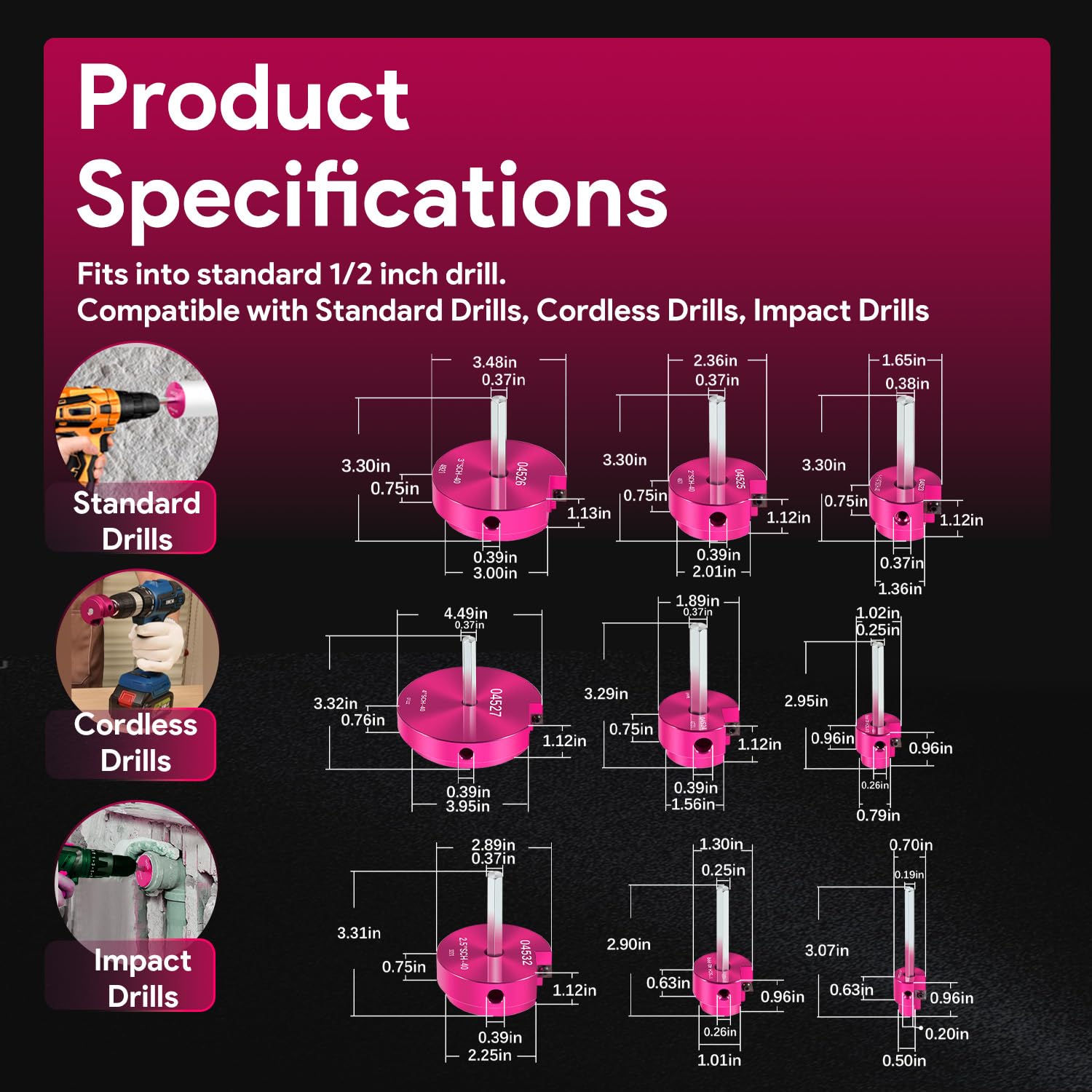 9Pcs PVC Pipe Fitting Reamer Kit - Complete Plastic Reamer Set Fits into Standard 1/2" Drills Contains 1/2", 3/4'', 1'', 1-1/4", 1-1/2'', 2'', 2-1/2", 3'' and 4'' for PVC, SCH40, ABS, CPVC