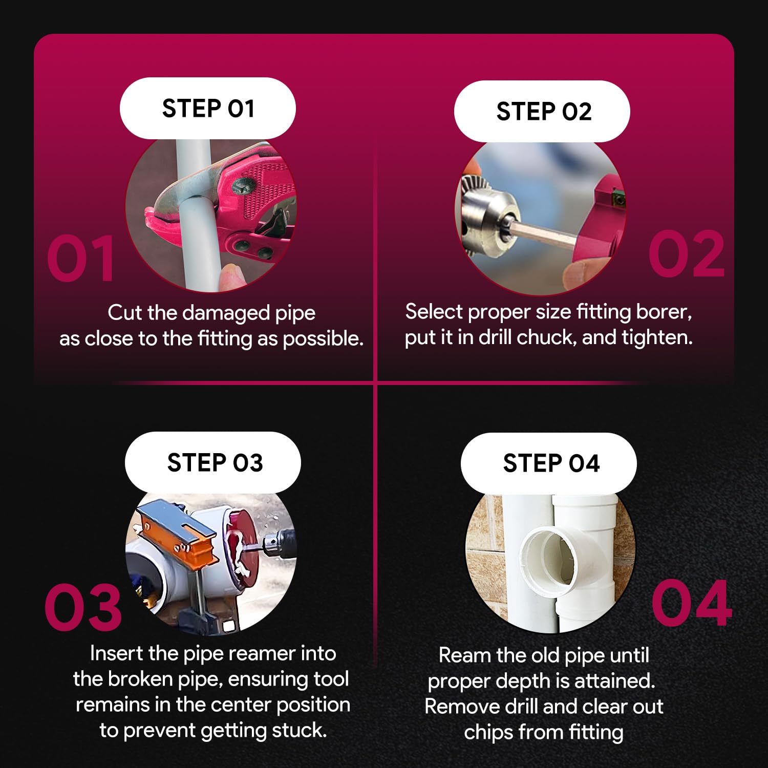 - 【Wide Application】 Professionally designed to clean out the old or broken pipe and leftover solvent cement from a fitting quickly and effortlessly so the fitting can be reused, greatly saving money and time. It can be applied to PVC Pipe, Sch 40 PVC Pipe, CPVC and ABS Ventilation pipe, exhaust pipe, drain pipe, and water pipe.