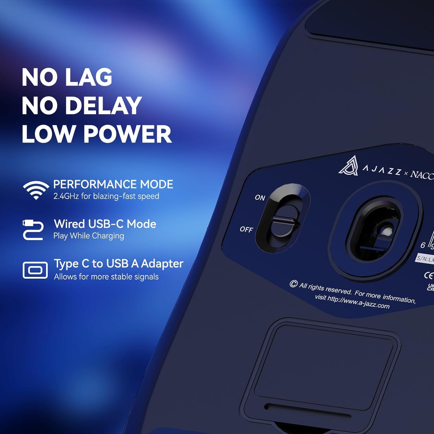 - 【Dual Mode Connection】This lightweight gaming mouse support 2 connection mode-wired connection by plugging the braided type-c cable(which is also the charging cable), wireless connection by plugging the USB receiver which placed in the bottom slot of the mouse into your computer USB port after turning it on, you can freely switch it according to your real needs. Note: It will auto enter into wired mode after plugging the USB cable.