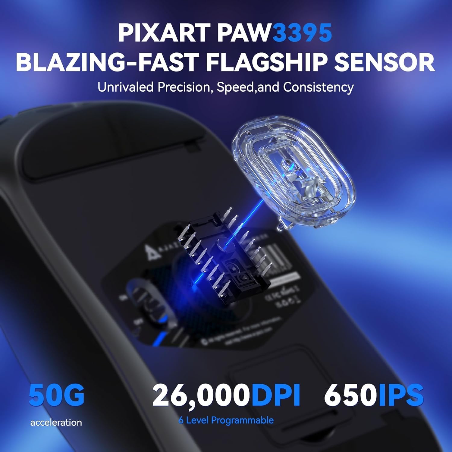 - 【Programmable Gaming Mouse】Comes with a default 6 adjustable DPI level(400-800-1200-1600-2400-3200) in different indicator light color, you can easily adjust it by pressing the DPI button, and it also support customization by using the mouse driver, you can use it to freely adjust the DPI from 100 to 26000, change the polling rate, redefine the mouse button function, set your macro mode and check battery level, bring you a extreme performance.