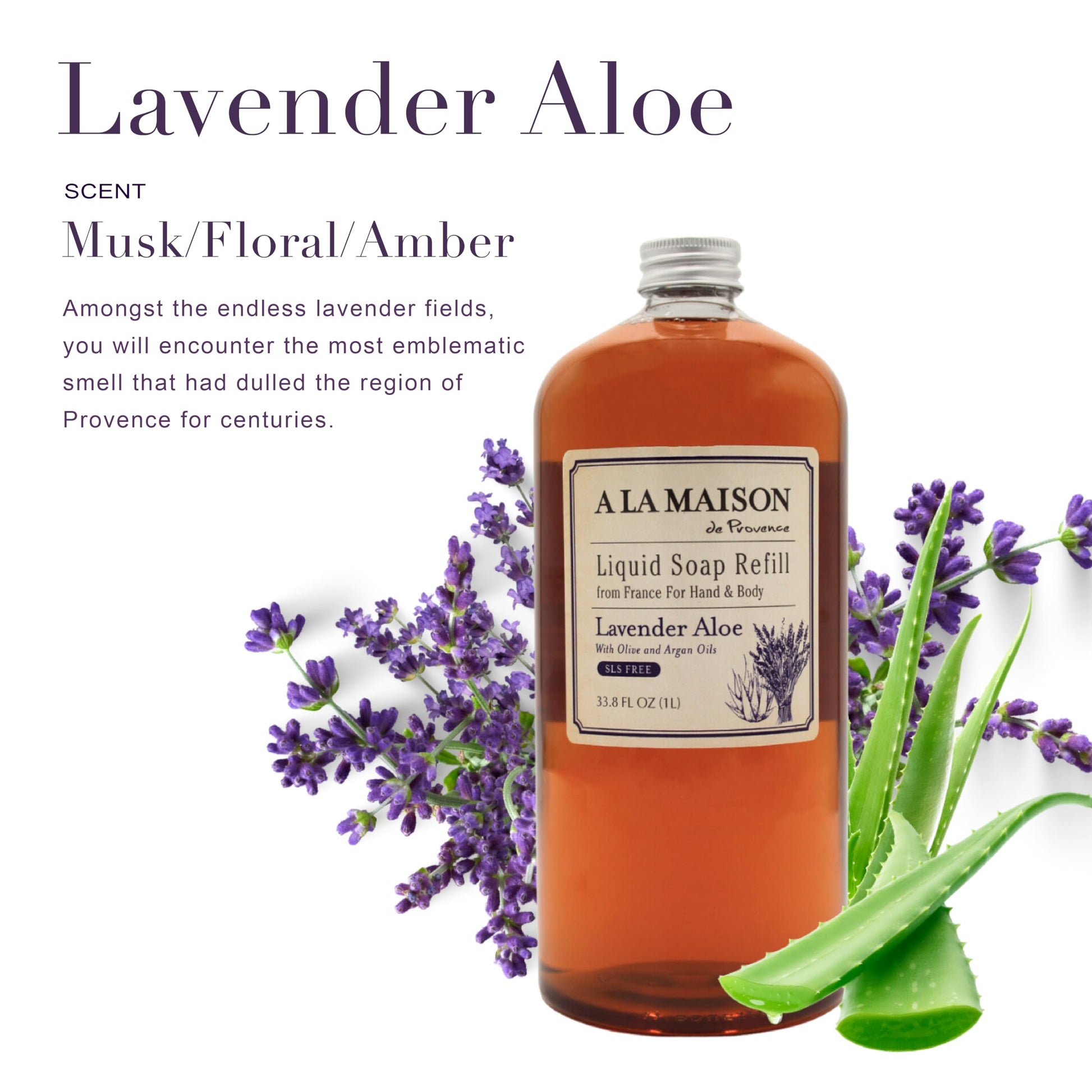A LA MAISON French Liquid Hand Soap Refill, Lavender Aloe - Natural Hand Wash Made with Essential Oils - Biodegradable, Plant-Based, Vegan, Cruelty-Free, Alcohol & Paraben Free (33.8 oz, 2 Pack)