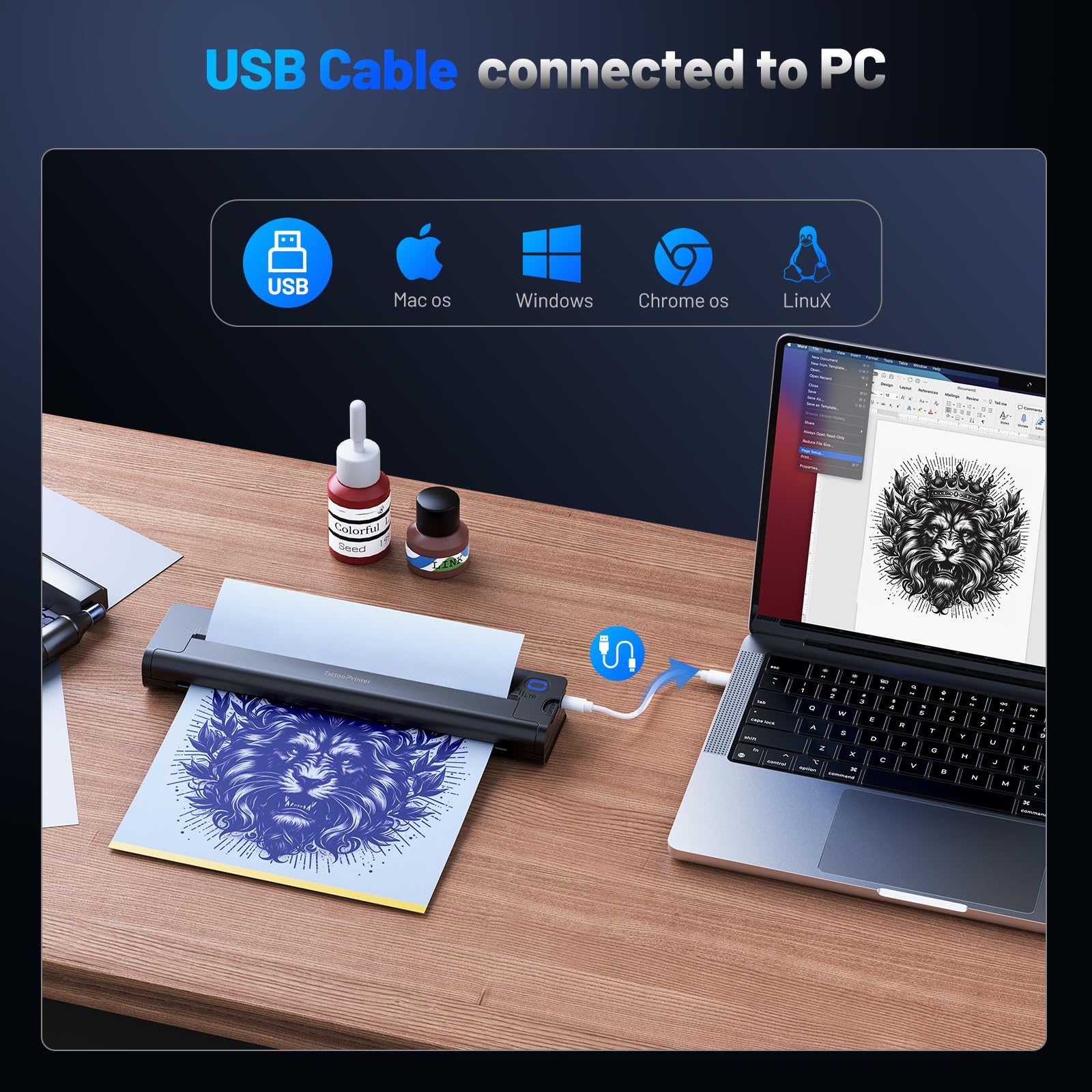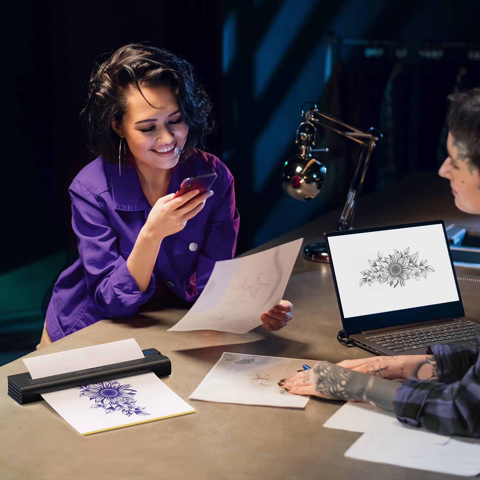 - 【Portable and Lightweight Design】Weighing just 2 pounds, this wireless tattoo stencil printer is compact and easy to carry, making it perfect for tattoo studios or on-the-go artists. Its sleek, modern design pairs seamlessly with any workspace, while its Bluetooth connectivity ensures a clutter-free setup.