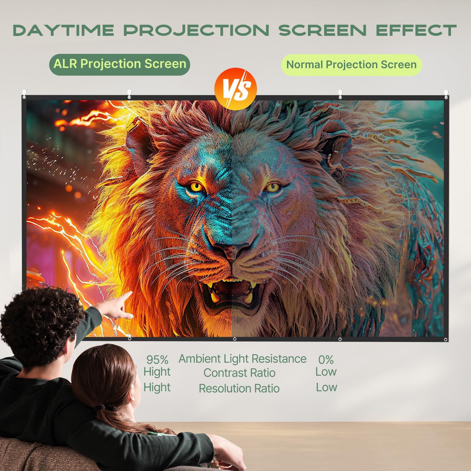 AAJK ALR Projector Screen, 4K Movie Projector Screen 16:9 HD Foldable Anti-Crease Portable Projector, Movies Screen for Home Theater Outdoor Indoor Support Double Sided Projection (120in Pro)