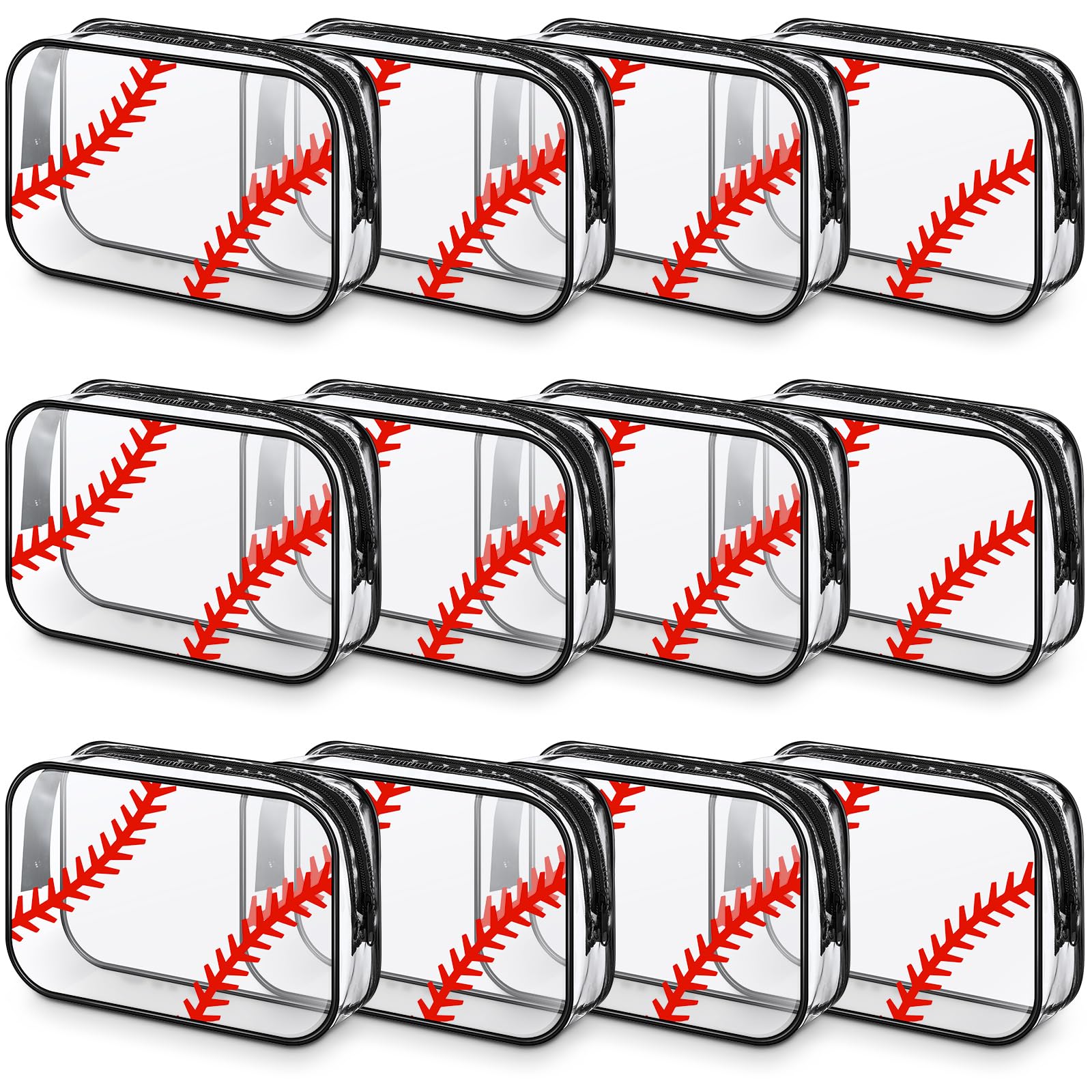 Abbylike 12 Pcs 7 x 4.7 x 2.4'' Cosmetic Bag Gifts Accessories for Makeup Bags PVC Cheer Case Clear Toiletry Zipper Pouch for Women Christmas Xmas (Baseball Theme)