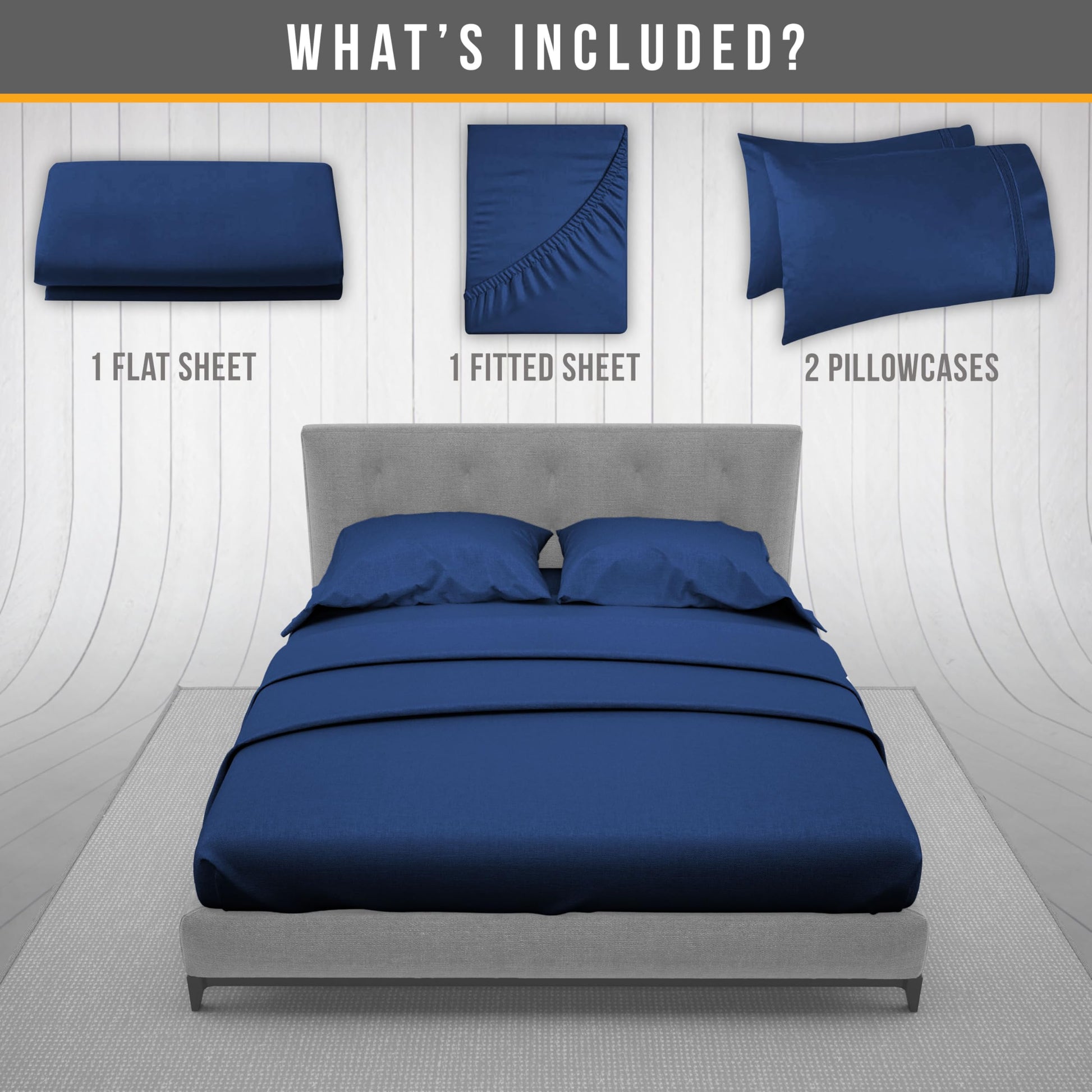 - 4 PIECE LUXURY QUEEN SIZE BED SHEETS SET – 1 flat sheet 102"x90", 1 fitted sheet 80"x60", 2 embroidered pillowcases 20"x30" complete bedding solution navy blue bed sheets