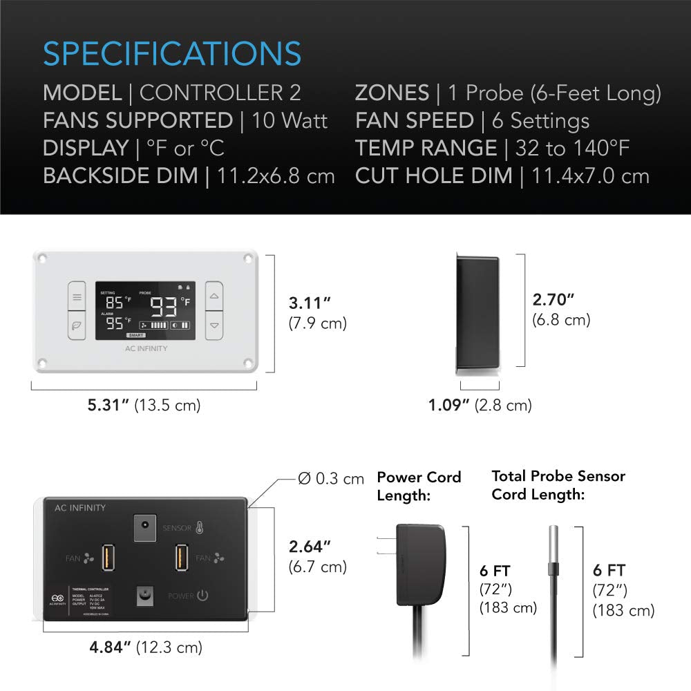 AC Infinity AIRPLATE T8 White, Quiet Cooling Dual-Fan System 6" with Thermostat Control, for Home Theater AV Cabinets