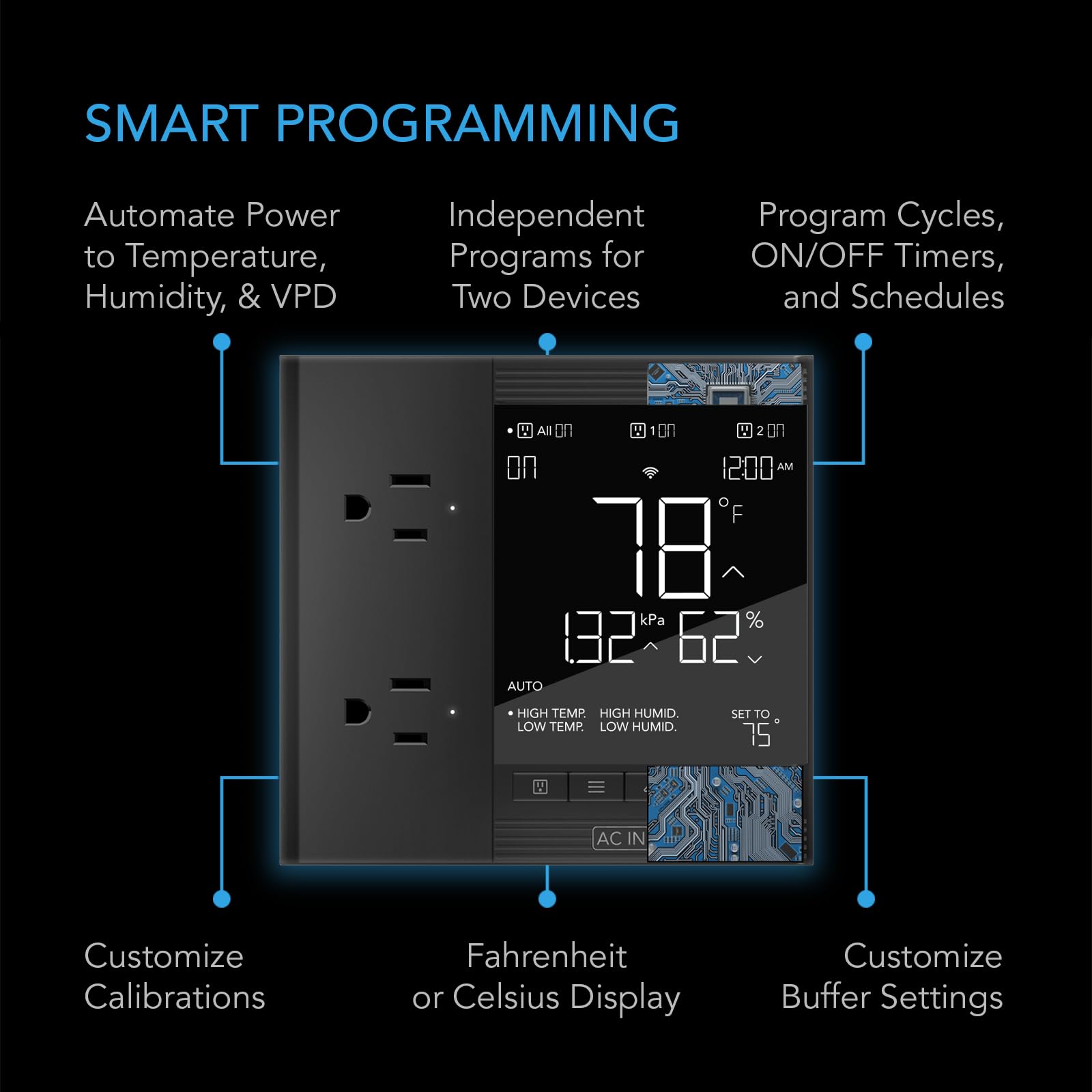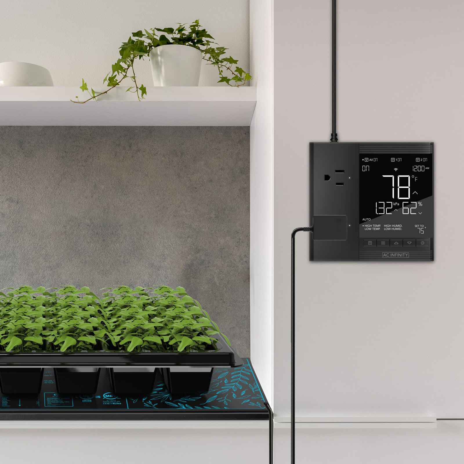 AC Infinity Controller 75 PRO, WiFi Outlet Controller, Independent Programs for Two Devices, Desktop Digital Thermostat with Temperature, Humidity, VPD, & Timer Controls, for Seed Starting Heat Mats