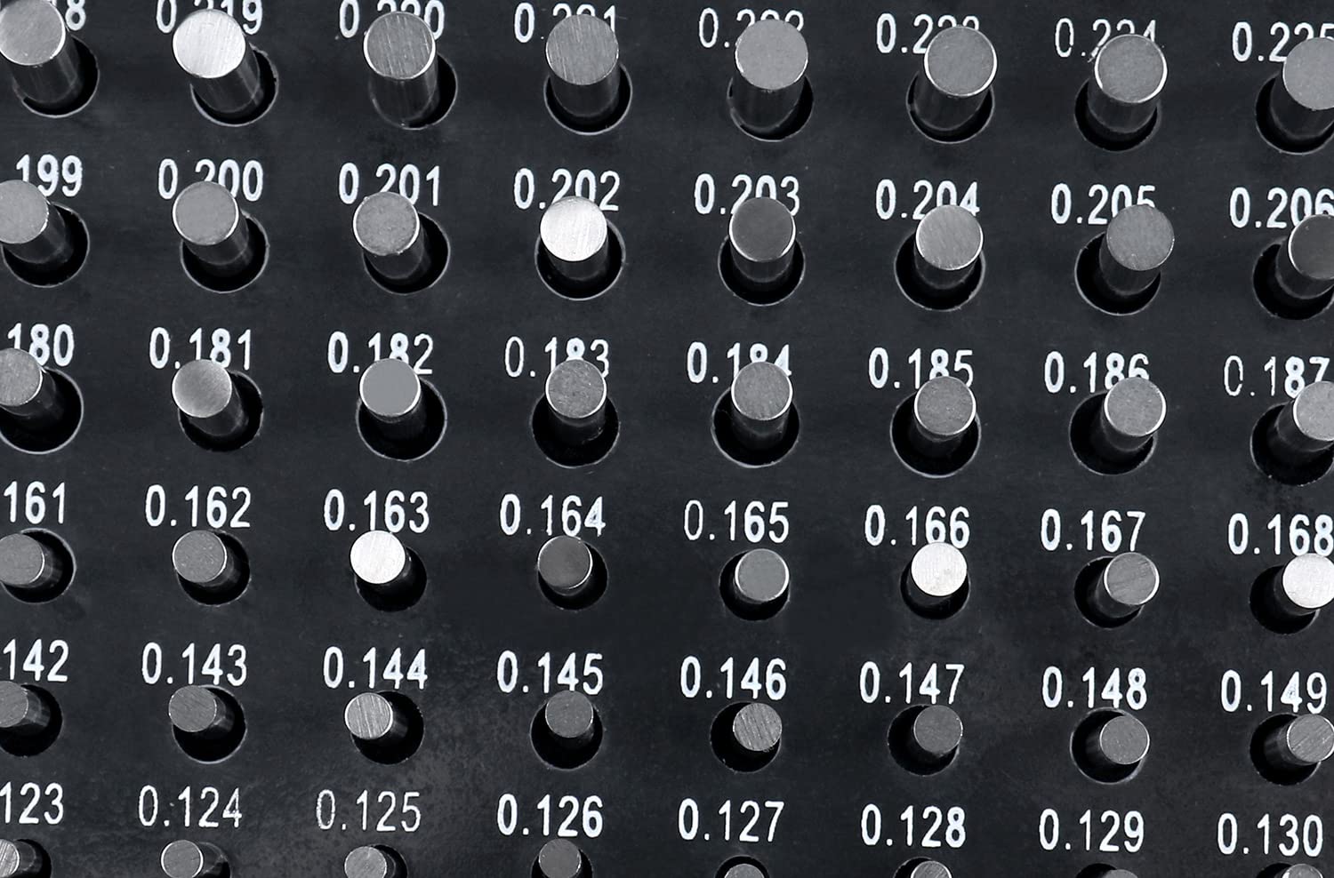 - Comprehensive Range: 190-piece set covering diameters from 0.061" to 0.250", with size electro-etched on each pin for easy identification.