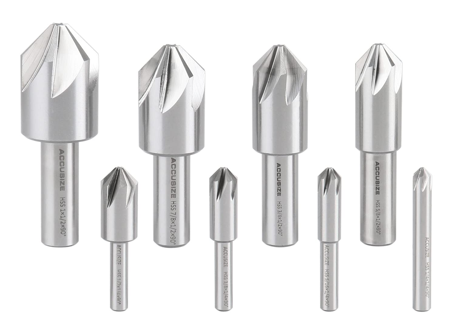 Accusize Industrial Tools 90 Degree 6 Flute H.S.S. Machine Countersink, 8 Pcs, 0206-2016
