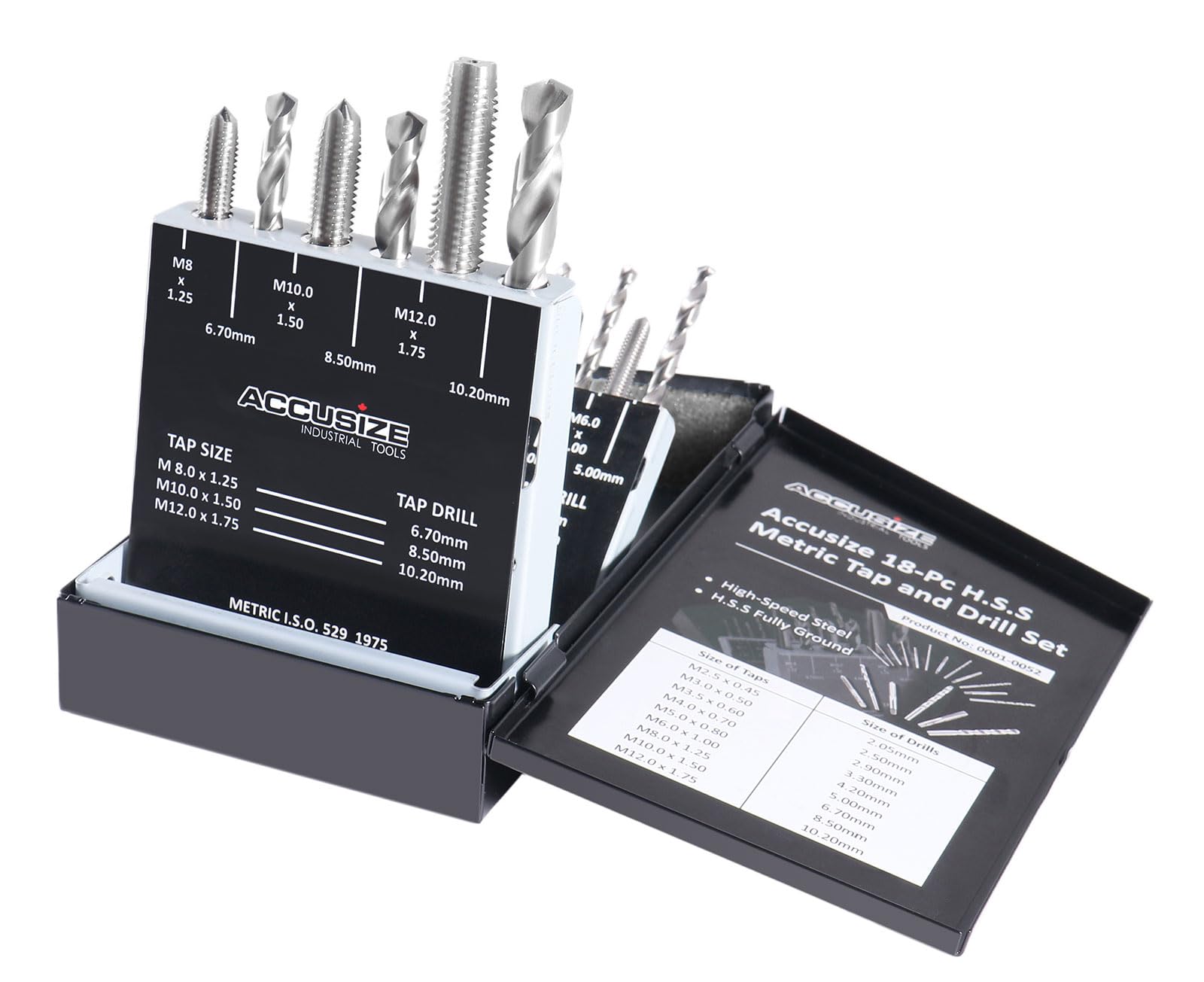 Accusize Industrial Tools Metric 18 Pc H.S.S. Tap and Drill Set, 0001-0052