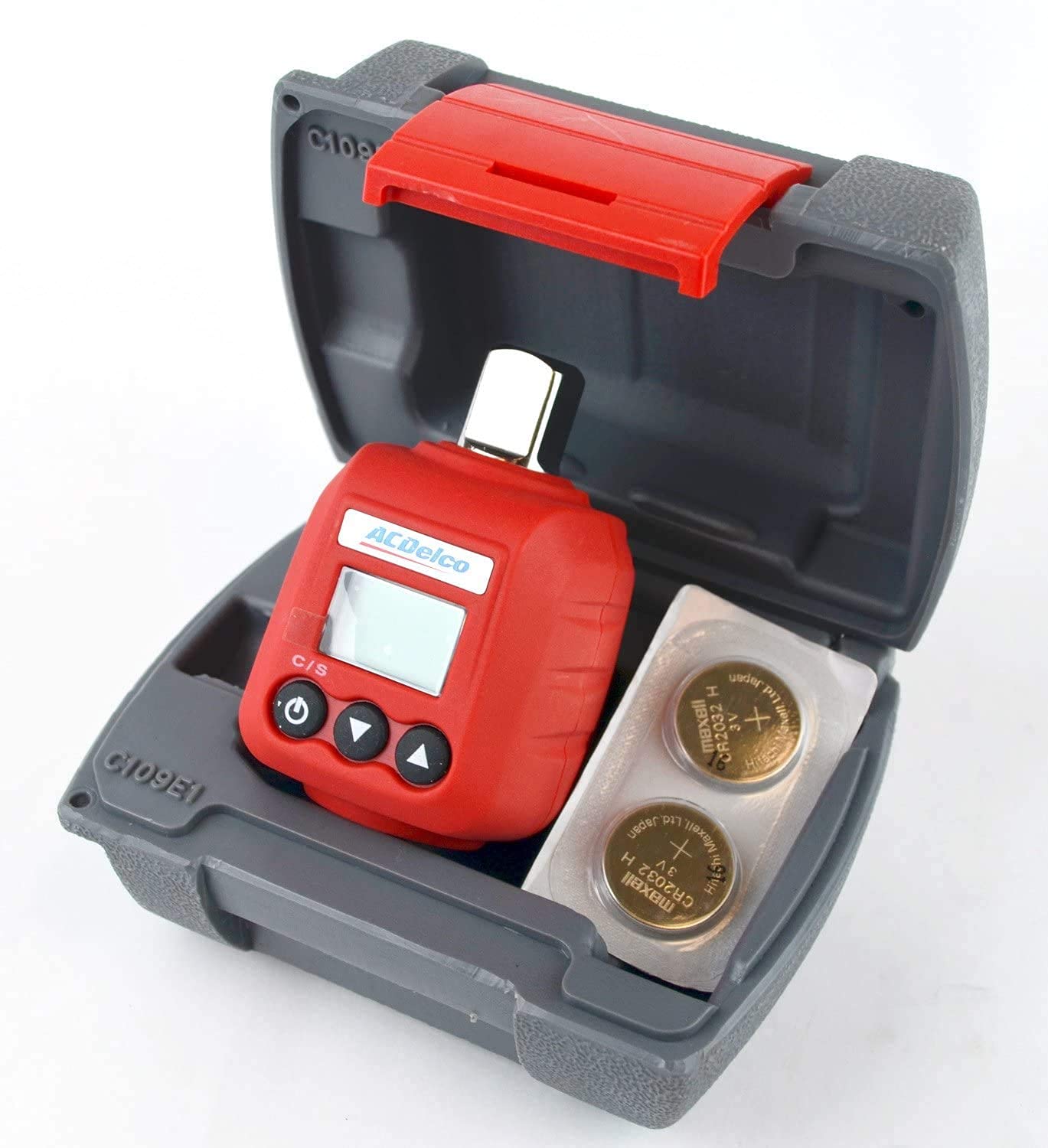 Details: The ACDelco Brand has been around well over 100 years and its name has become synonymous with quality & reliability. ACDelco power tools are built for people who make a living with their tools, day in and day out, and require exceptional sturdiness and reliability. ACDelco offers the most complete line of digital torque wrenches and adapters for professionals who require high precision measurement on torque (ft-lbs./Nm) and angle degree for their job. Please use selection guides to choose the right digital torque wrench with right torque range for your application. FEATURES . Static torque measurement. Standard functions: torque setting, measurement setting, mode setting. Operation in both clockwise and counterclockwise directions. LCD display shows N-m (or kg-cm, in-lbs., ft-lbs.) measurements. Audible torque confirmation by means of buzzer Specifications - Model Number: ARM602-4 - Head Size: 1/2" - Torque Range: (14.8 to 147.6 ft-lbs.) - Tool Weight: 0.44 lbs. (0.2 kg) - Battery: 2-coin batteries (CR2032 - included)